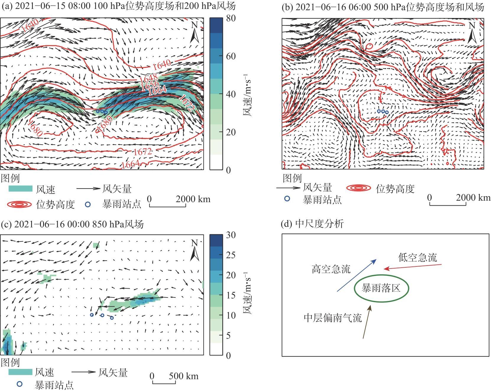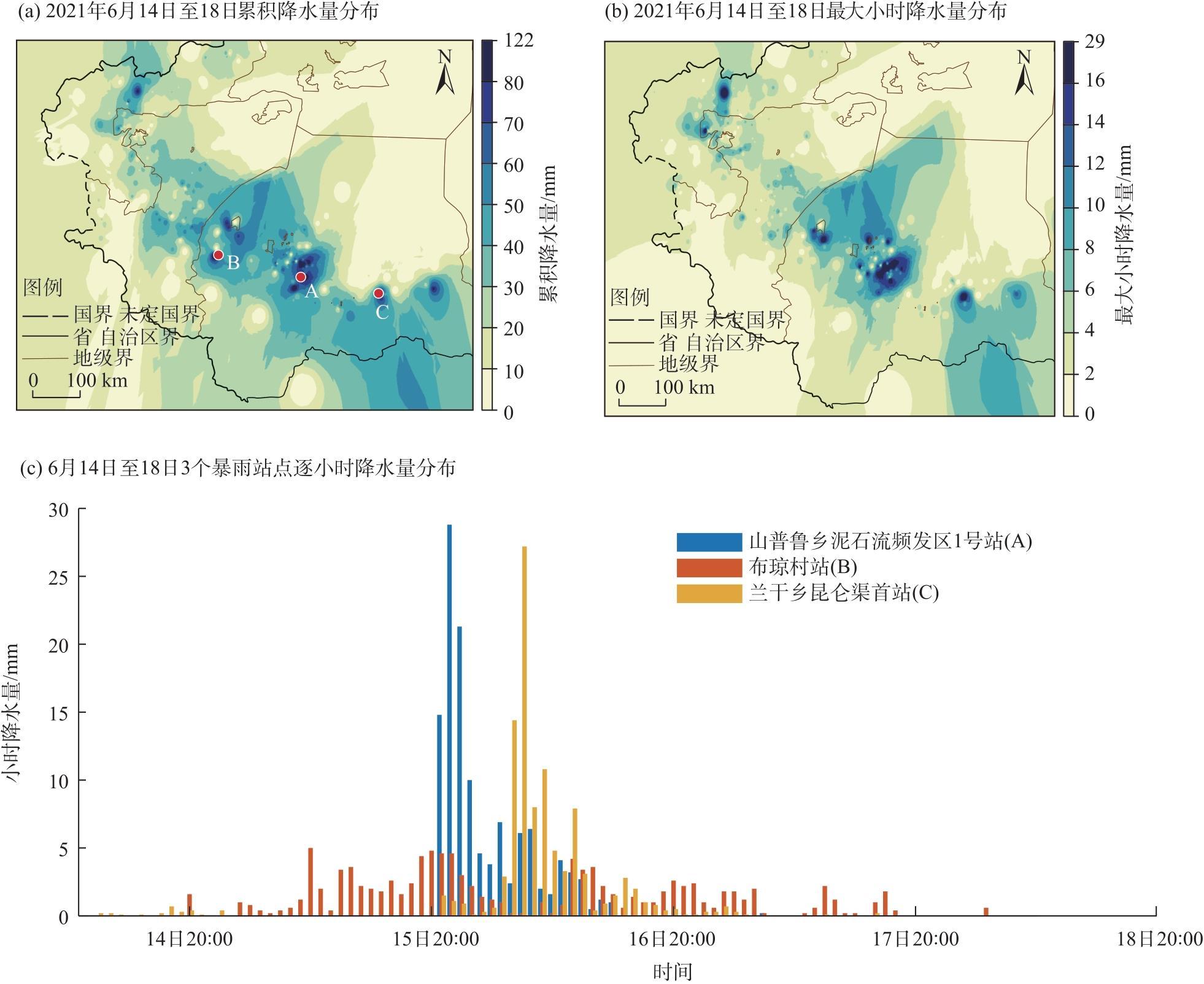 在全球变暖的背景下,昆仑山北坡极端暴雨频发且影响巨大,由于对其的观测和研究相对匮乏,使得该区域暴雨监测和预报难度大。理解其发生机理和关键影响系统是提高其监测预报的有效途径,对该区域防灾减灾意义重大。利用高时空分辨率的气象观测资料、GPS/Met大气可降水量(PWV)资料、风云卫星资料(FY-2H)和ERA5再分析资料,对2021年6月14—17日昆仑山北坡一次极端暴雨过程进行大尺度环流背景场和中尺度对流系统特征分析。结果表明:(1)此次暴雨过程,暴雨站数多、累积降水量大、局地性强并且极端性强,在和田地区出现3个极端暴雨中心,分别发生了短时强降水和连续性降水。其中短时强降水过程持续时间短,最大小时雨强达29.4 mm;连续性降水持续时间达3 d,小时雨强小于5 mm。本次极端暴雨发生的有利环流背景是双体型南亚高压在对流层高层维持,中亚低涡形成发展。在高低空急流共同作用下,高层强辐散、低层辐合促进大气垂直运动发展,500 hPa偏南气流、700 hPa切变线以及850 hPa偏东气流相互配合为暴雨提供有利动力配置。(2)对流层中层以西南路径和西南+南方路径水汽输送为主,低层主要以低空偏东急流携带水汽输送为主,中低层水汽输送路径形成耦合,促进本次极端暴雨的发展加强。极端暴雨发生前持续的水汽输送和强的水汽通量辐合中心,使得暴雨区大气可降水量(PWV)在降水前出现显著增湿聚集过程,PWV达30 mm。(3)列车效应型+合并加强型中尺度对流云团不断在暴雨站点上空生成发展并移过,是触发短时强降水的直接影响系统,站点位于对流云团黑体亮温(TBB)梯度最大处。中-β和中-α尺度对流云团发展维持以及涡旋状中尺度对流云带的持续覆盖,是导致暴雨站点发生连续性降水的关键系统。