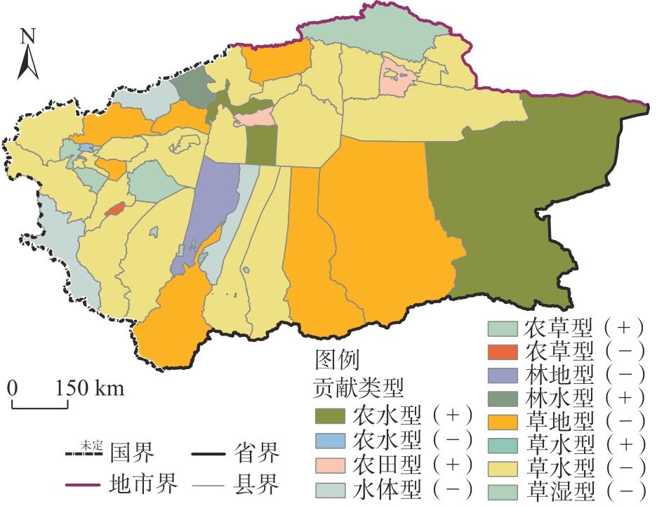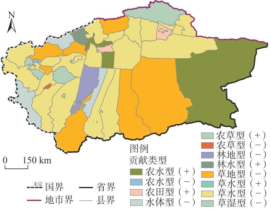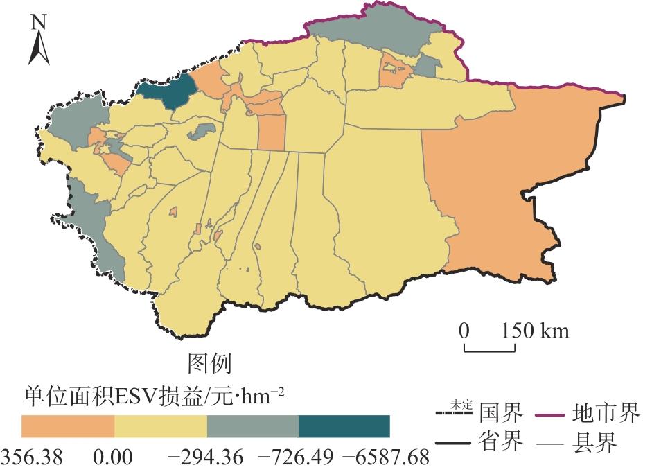 | 农田生态-经济不可持续区 | 农草型(-)、农水型(-) | 以农田为ESV减损主导地类的生态-经济恶化型县域 |