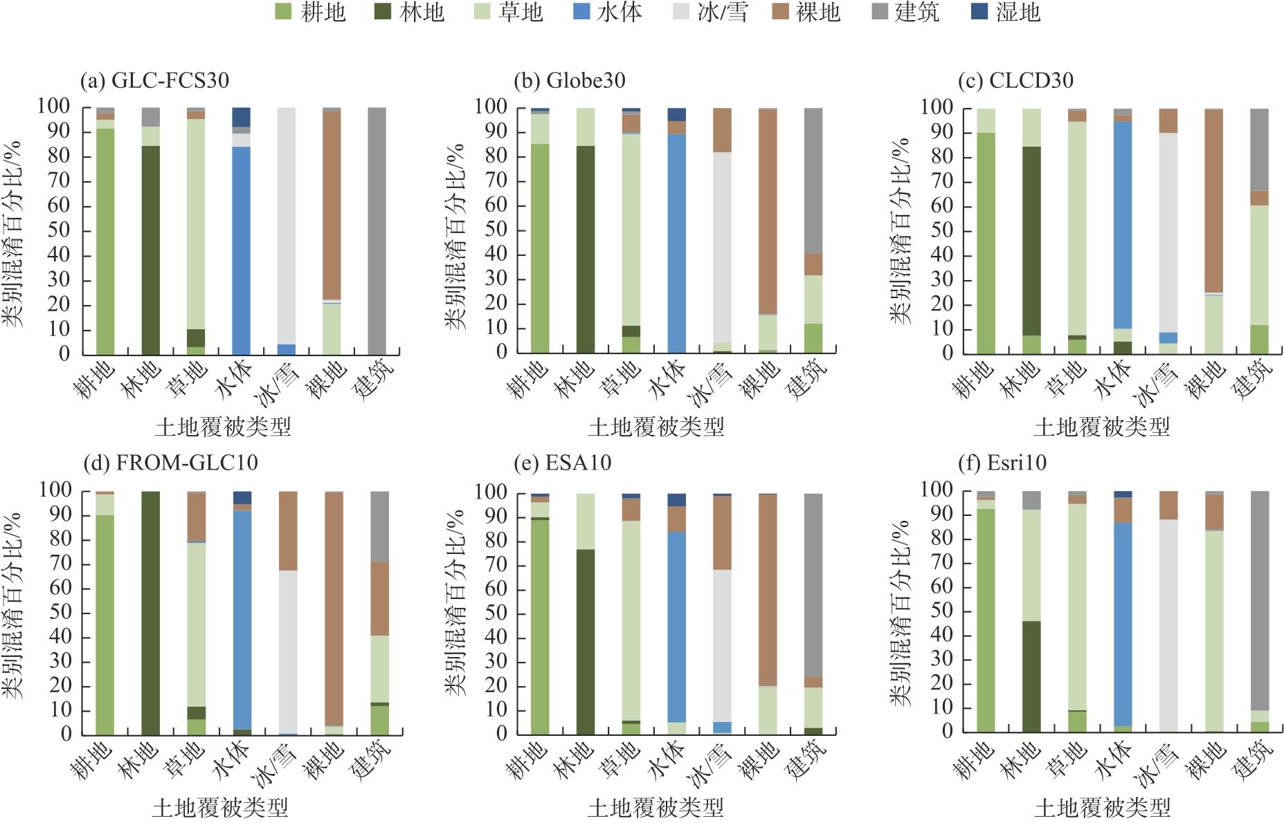 | 产品 | FROM-GLC10 | GLC_FCS30 | CLCD30 | ESA10 | Globe30 | Esri10 | 统一类别 |
