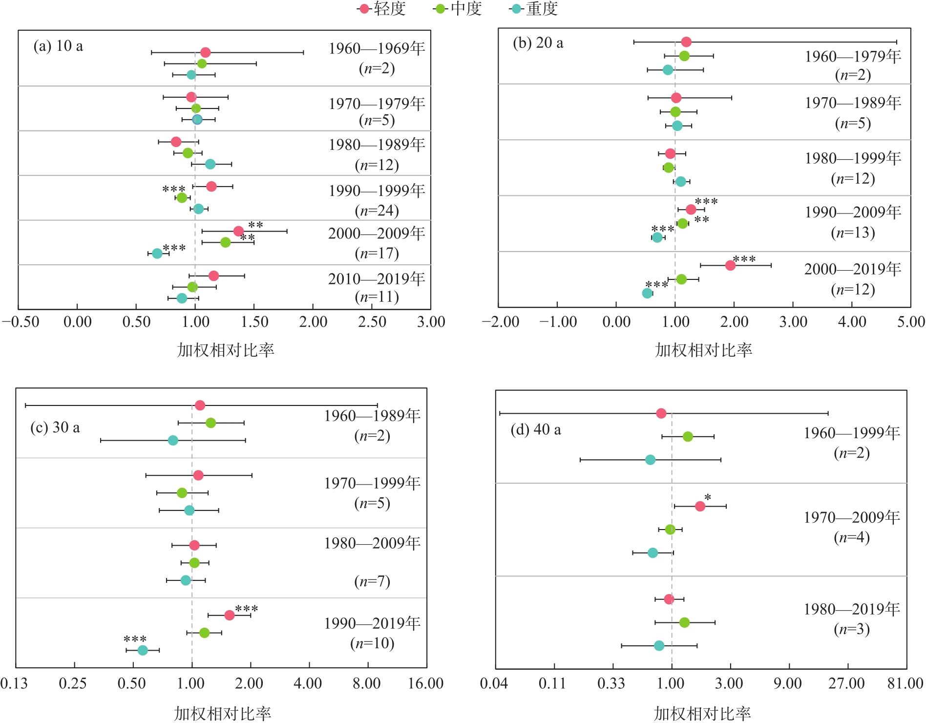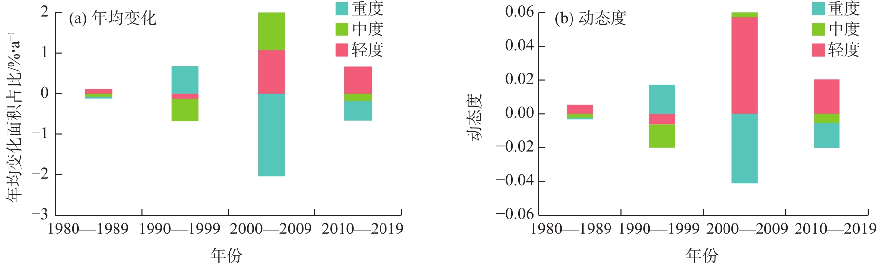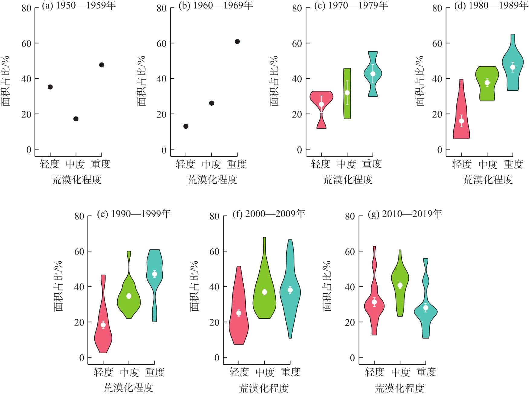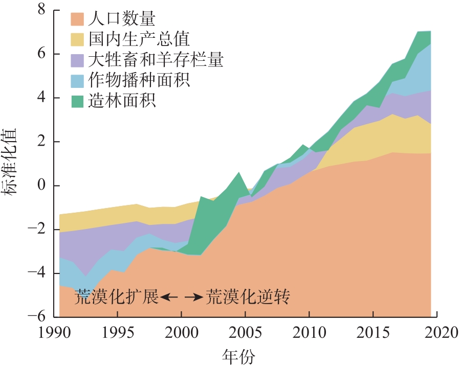 荒漠化是全球重要的生态环境问题,毛乌素沙地是我国荒漠化防治的重点区域。过去30 a来已有许多关于毛乌素沙地荒漠化动态的研究,但是缺乏对近70 a来毛乌素沙地荒漠化动态变化趋势的系统分析。采用Meta分析方法整合39个研究案例的研究结果,系统分析1950年代以来毛乌素沙地荒漠化动态变化趋势,并对驱动因素进行了讨论。结果表明:(1)近70 a来,毛乌素沙地轻度荒漠化面积占比呈现先减少后增加的趋势,中度荒漠化面积占比呈现略有增加的趋势,重度荒漠化面积占比呈现先增加后减少的趋势,荒漠化呈现明显的逆转趋势。(2)1980—1989年毛乌素沙地荒漠化轻微逆转,1990—1999年荒漠化有扩展趋势,2000—2009年荒漠化发生逆转,2010—2019年荒漠化持续稳定逆转,2000年是毛乌素沙地荒漠化发生逆转的重要时间节点。(3)连续的干旱对荒漠化扩展具有显著的促进作用,2000年以来持续的生态工程建设和“禁牧、休牧、轮牧和以草定畜”政策的实施是毛乌素沙地荒漠化持续逆转的主要原因。研究结果可以为系统认识毛乌素沙地荒漠化发展规律及制定荒漠化防治对策提供参考。