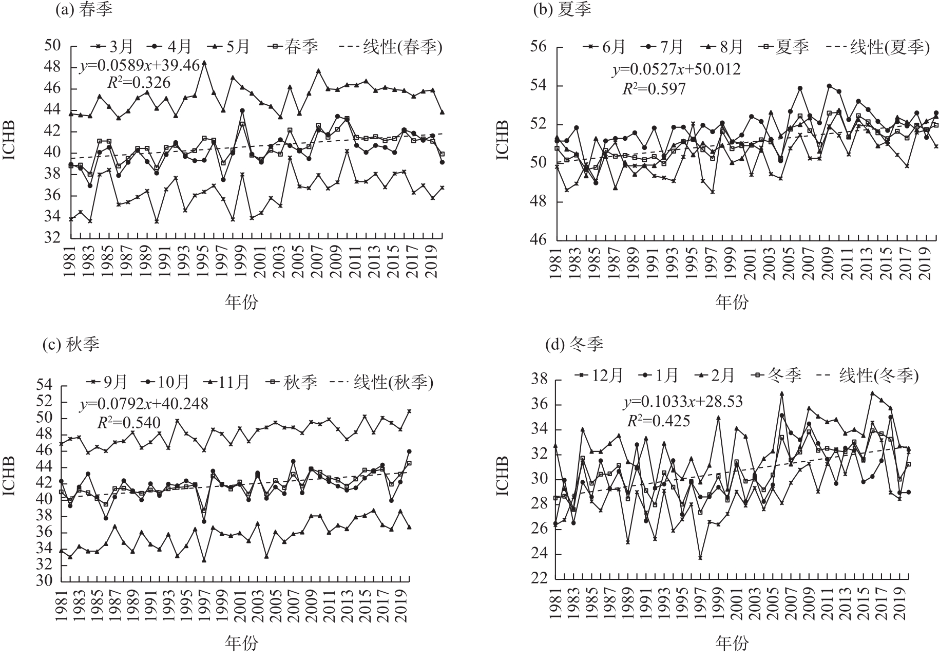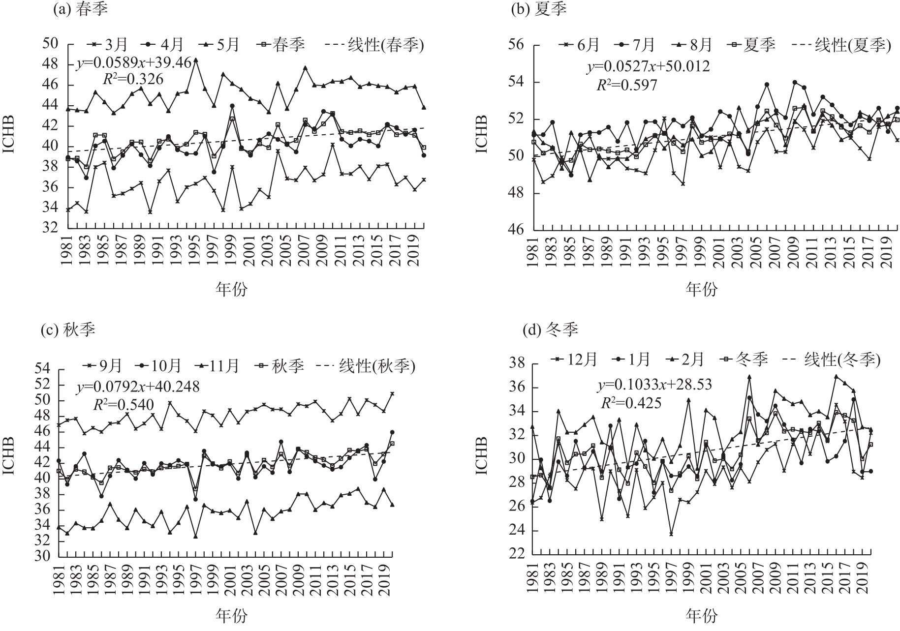 表4 1981—2020年平均气候态下日ICHB的等级天数及占比Tab. 4 Graded days and annual percentage of daily ICHB under average climatic conditions from 1981 to 2020 |