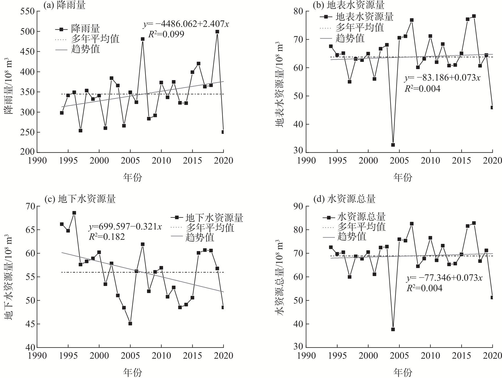 表1 河西走廊地区各部门用水变化情况Tab. 1 Changes in water use by sectors in the Hexi Corridor region /108 m³ |