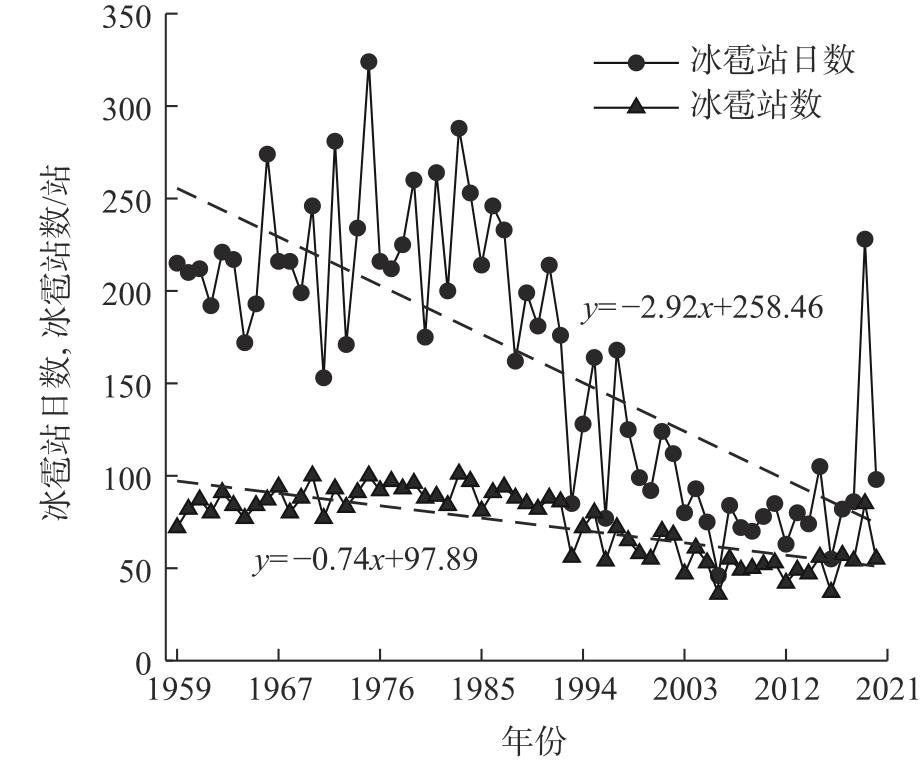 表1 1959—2021年内蒙古冰雹站日数及冰雹站日数频率月变化Tab. 1 Monthly variations of the hail station days number and frequency in Inner Mongolia from 1959 to 2021 |