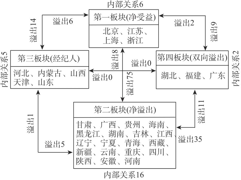 | 板块 | 接收关系 | 发出关系 | 期望内部 关系比例/% | 实际内部 关系比例/% | 板块属性 | ||