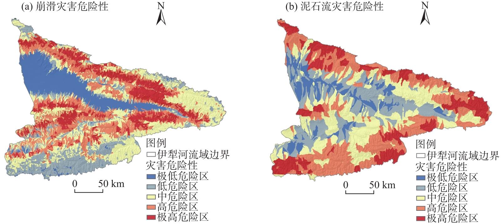 表3 伊犁河流域不同情景危险性分区占比Tab. 3 Proportion of hazard zones under different scenarios in the Ili River Basin /% |