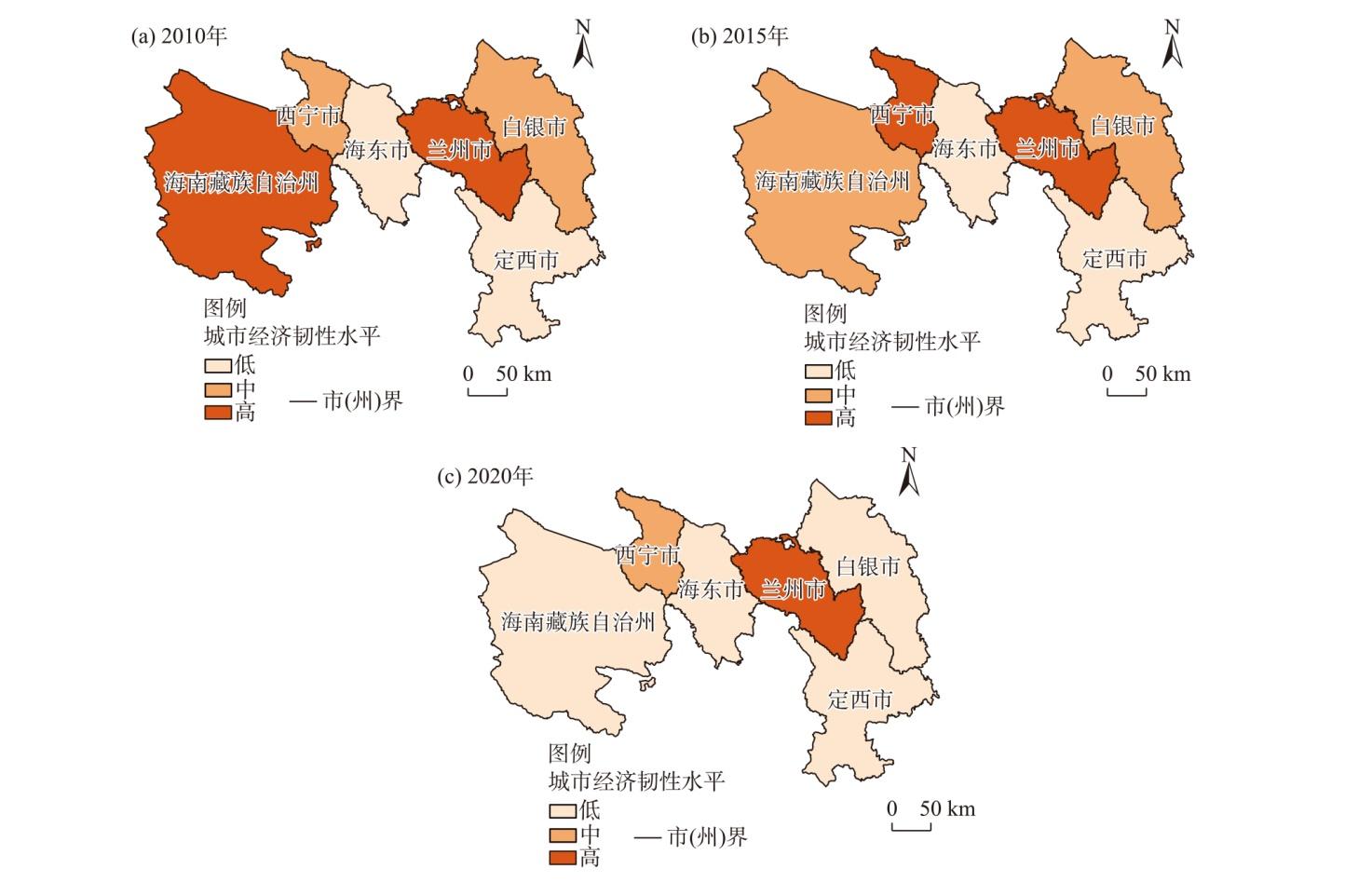 表2 兰西城市群主要城市的城市经济韧性Tab. 2 Urban economic resilience of major cities in the Lanzhou-Xining urban agglomeration |