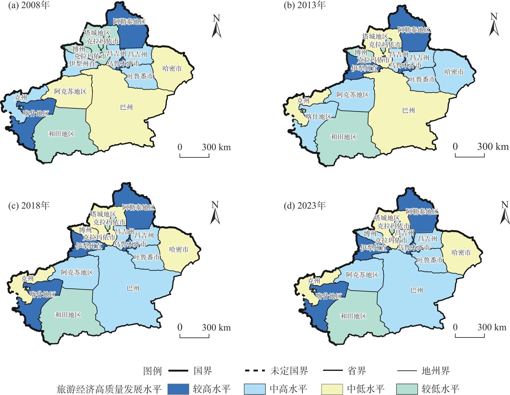 表2 2008—2023年新疆旅游经济高质量发展水平Tab. 2 High-quality development levels of tourism economy in Xinjiang from 2008 to 2023 |