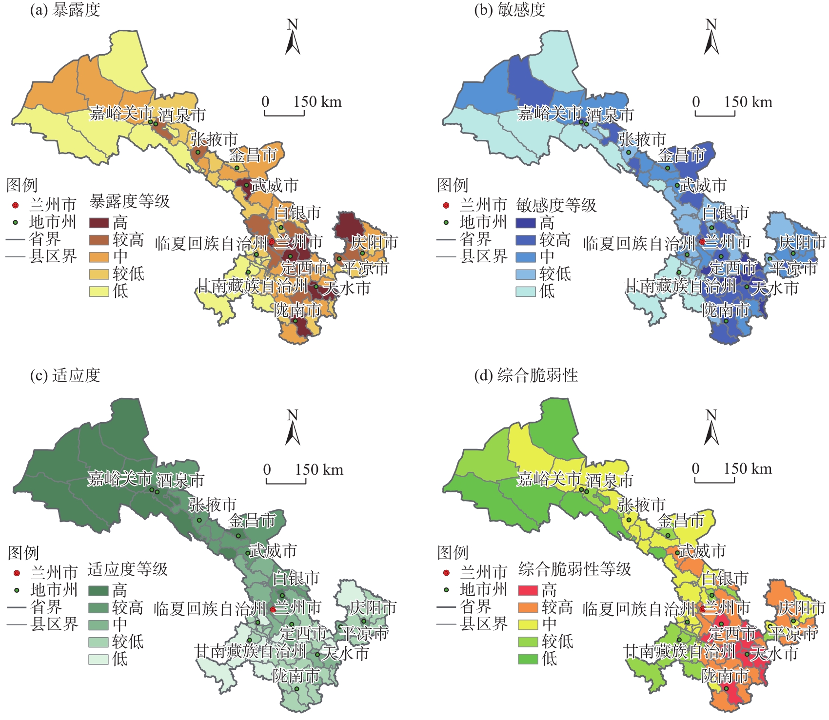 | 等级 | 暴露度 | 敏感度 | 适应度 | 综合脆弱性 |