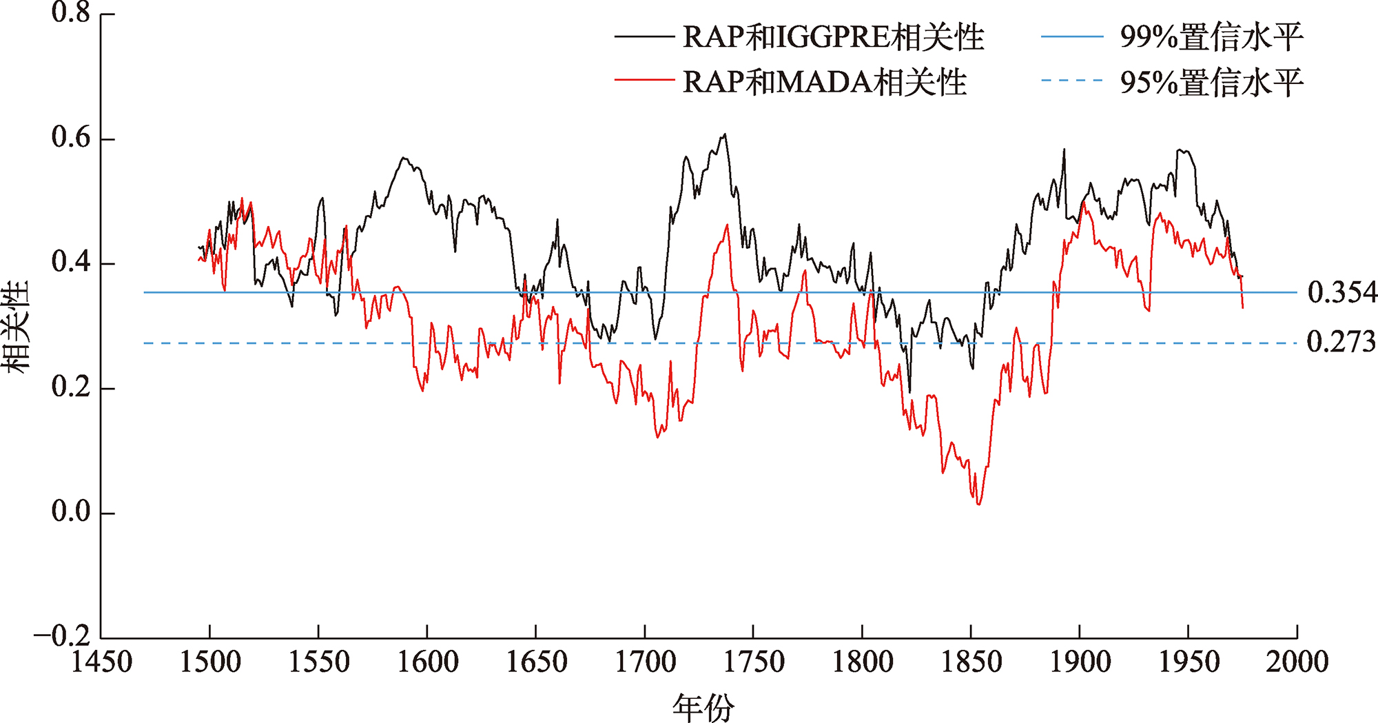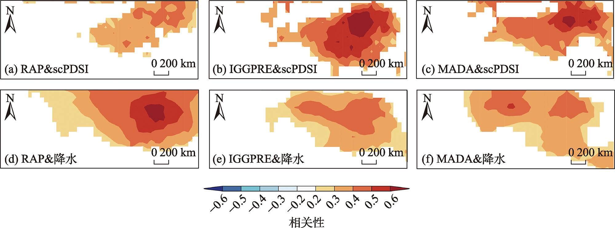 表3 RAP与IGGPRE、MADA的祁连山平均序列在年际和10 a尺度上的相关性Tab. 3 Correlation between the mean time series of the RAP and IGGPRE, and MADA in the Qilian Mountains at interannual and decadal time scales |