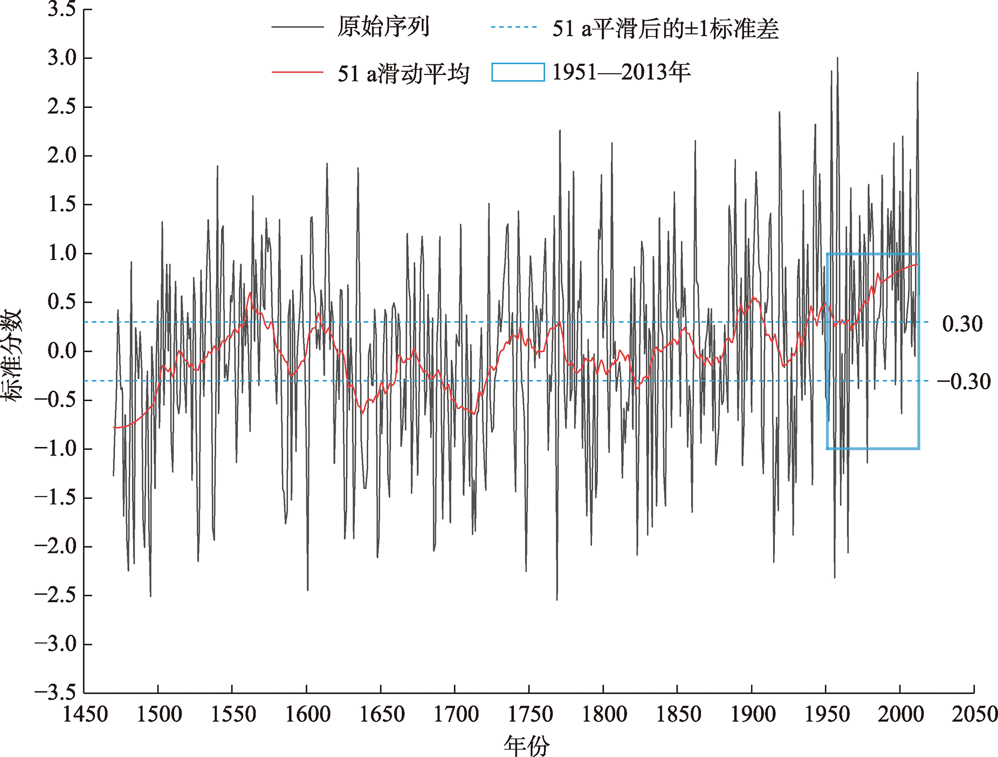 | 代用指标 | 453个树轮年表71条DWI | 327个树轮年表 | 372个树轮年表107条DWI |