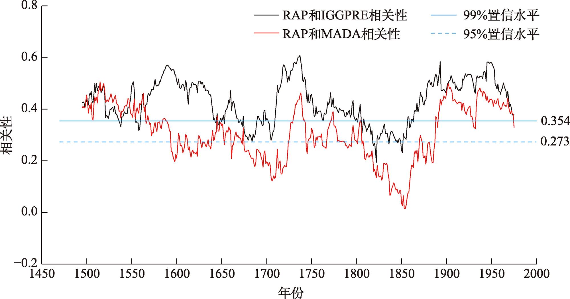 注:RAP为亚洲夏季降水数据集;MADA为亚洲季风干旱数据集;IGGPRE为中国531 a多指标降水量重建数据集;DWI为干湿指数;PPR为点对点回归法。 |
