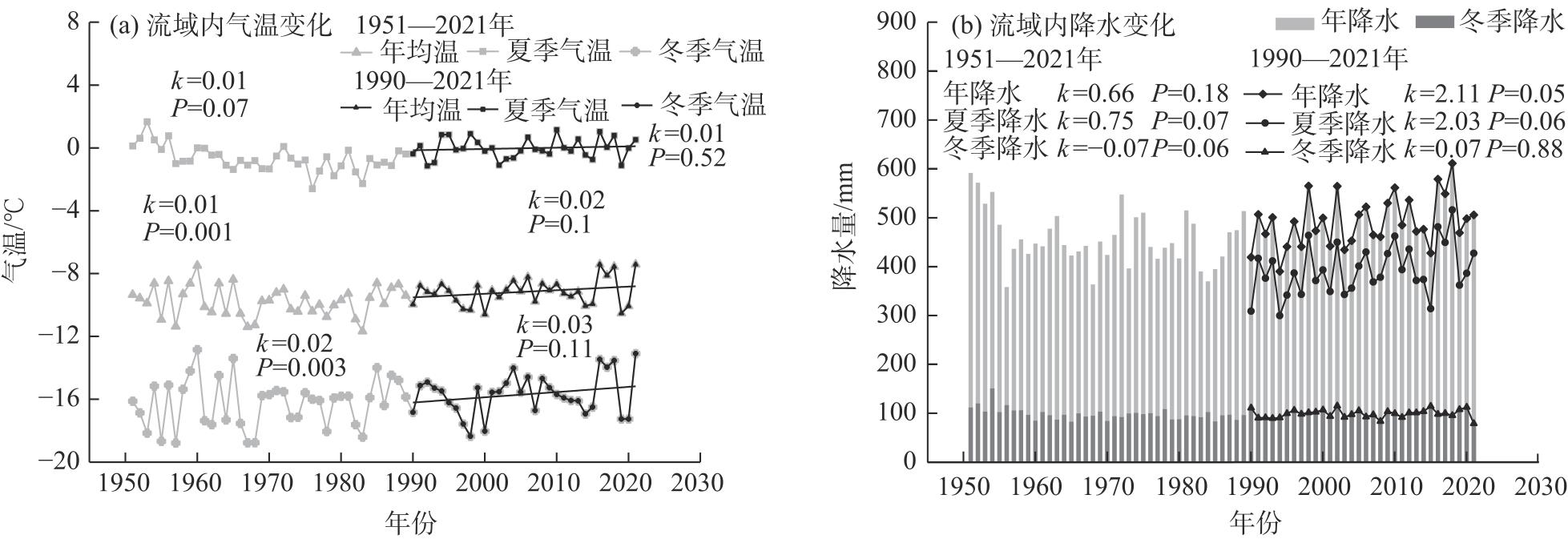 Glaciers and lakes are highly sensitive to climate change. This study examines the boundaries of glaciers and lakes in the Jingyu Lake Basin, east Kunlun Mountains from 1990 to 2023 using Landsat series imagery. In addition, the DAHITI water level dataset and the global glacier mass balance dataset were utilized to analyze changes in glacier area, volume, and mass balance, as well as the area, water level, and volume of the Jingyu Lake Basin. ERA5 meteorological reanalysis data were employed to assess the response of glaciers and lakes in the basin to climate change. The results indicate a significant expansion trend in the Jingyu Lake. From 1990 to 2023, Jingyu Lake expanded by 133.30 km2 at a rate of 4.66 km2·a-1. Between 2013 and 2023, the lake’s water level rose by 5.19 m, with an annual increase rate of 0.55 m·a-1, and its volume increased by 1.31 km3, averaging an annual increment of 0.16 km3. During the same period, the glacier area decreased by 4.59 km2 at a rate of -0.12 km2·a-1, and the glacier volume declined by 0.38 km3 at a rate of -0.01 km3·a-1. The average annual glacier mass balance from 2000 to 2020 was -1.22×10-4 m w.e. The average annual temperature in the Jingyu Lake Basin increased significantly from 1990 to 2021, with an annual warming rate of 0.02 ℃·a-1. In contrast, summer precipitation showed no significant warming trend, while the annual precipitation increased notably at a rate of 2.11 mm·a-1, with 78.9% of precipitation occurring in summer. Precipitation is identified as the primary factor contributing to lake expansion in the basin. This study highlights the response of glaciers and lakes in the Jingyu Lake Basin to climate change, providing valuable insights for local governments in optimizing water resource allocation and management.