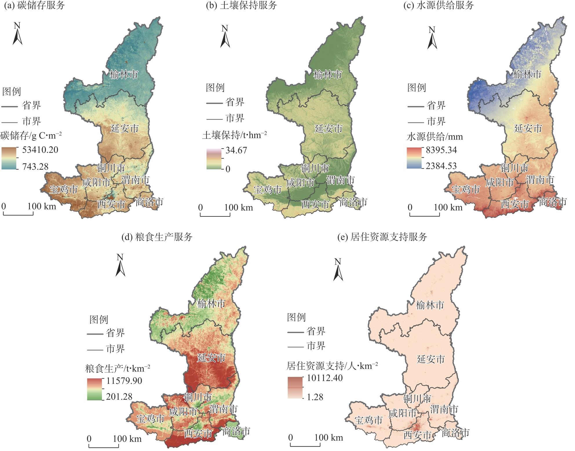 | 年份 | 碳储存 | 土壤保持 | 水源供给 | 粮食生产 | 居住资源支持 | 综合生态系统服务 |