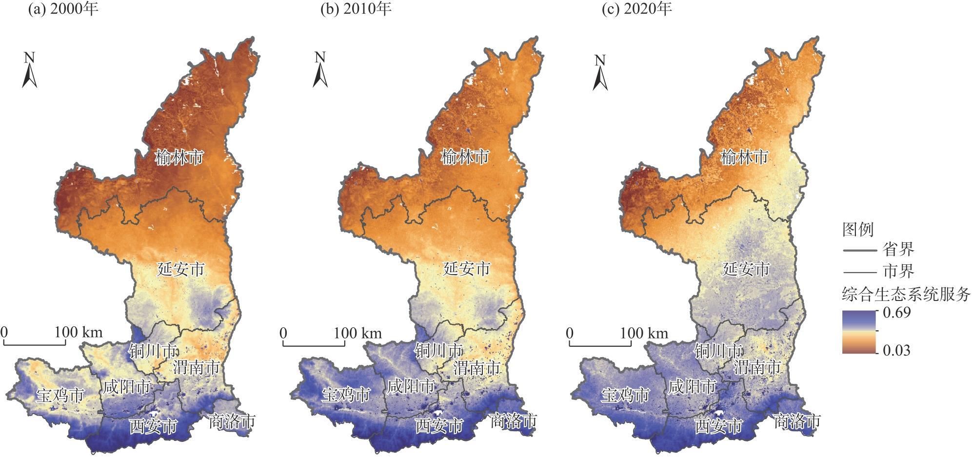 表2 2000—2020年各生态系统服务归一化均值Tab. 2 Normalized mean values of each ecosystem service from 2000 to 2020 |