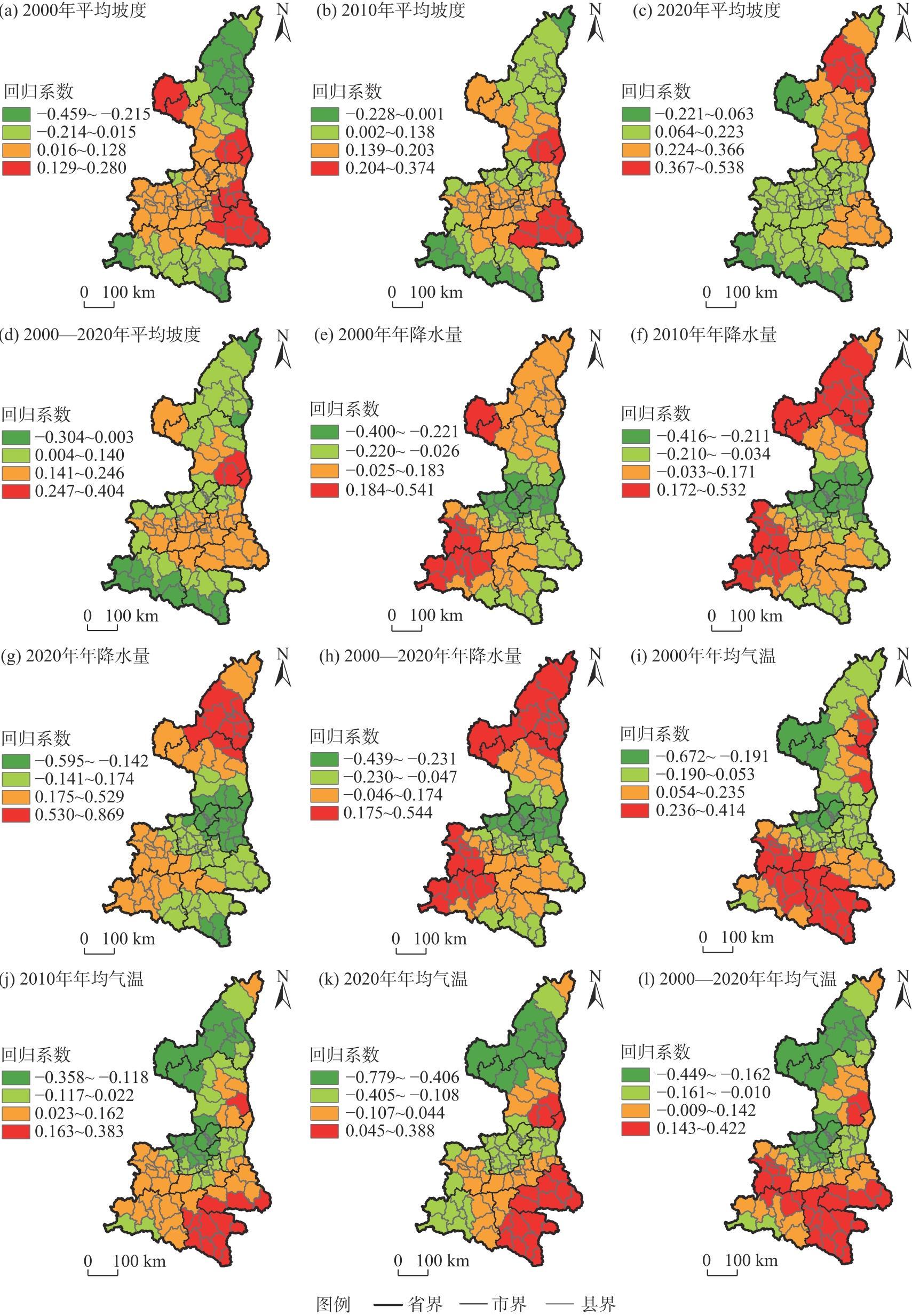 | 平均坡度(X7) | -0.042 | -0.113 | -0.337 |