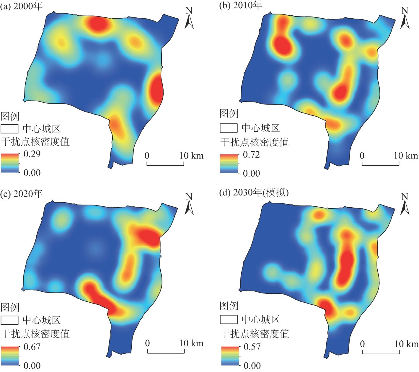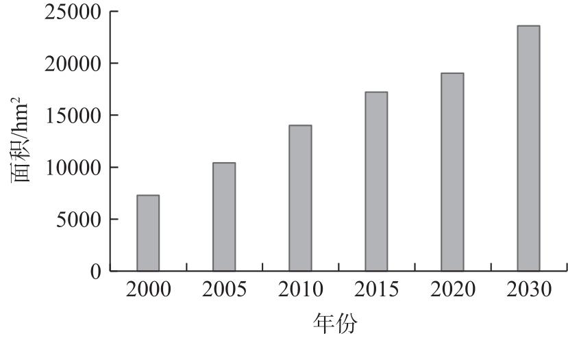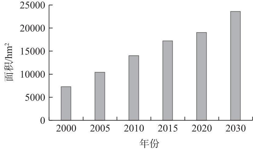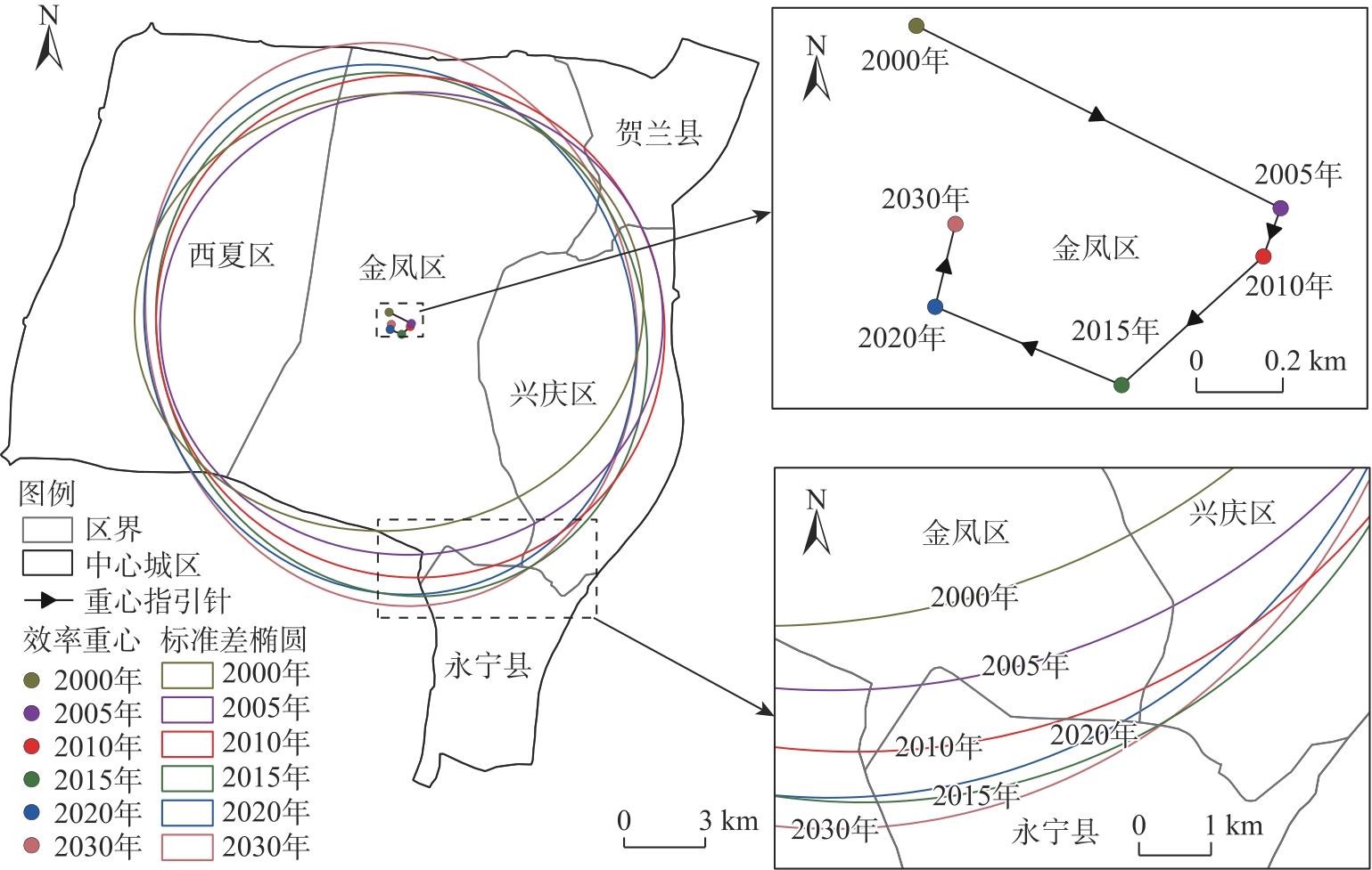 表2 2000—2030年银川市中心城区标准差椭圆参数变化统计Tab. 2 Statistics of standard deviation ellipse parameters in the central urban area of Yinchuan City from 2000 to 2030 |