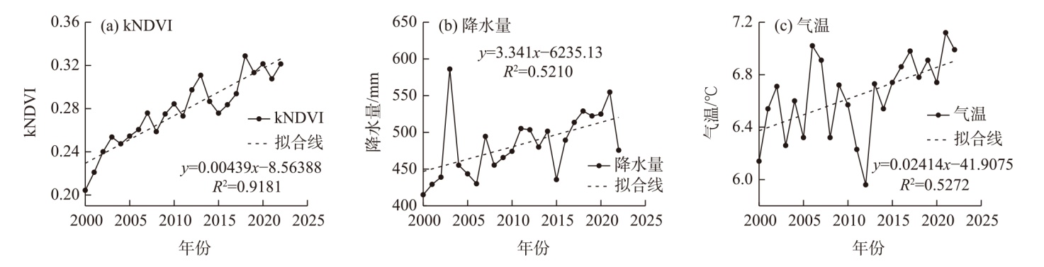 注: SkNDVI为kNDVI的Theil-Sen斜率估计值;Zs为2000—2022年kNDVI的Mann-Kendall(M-K)趋势检验值。 |