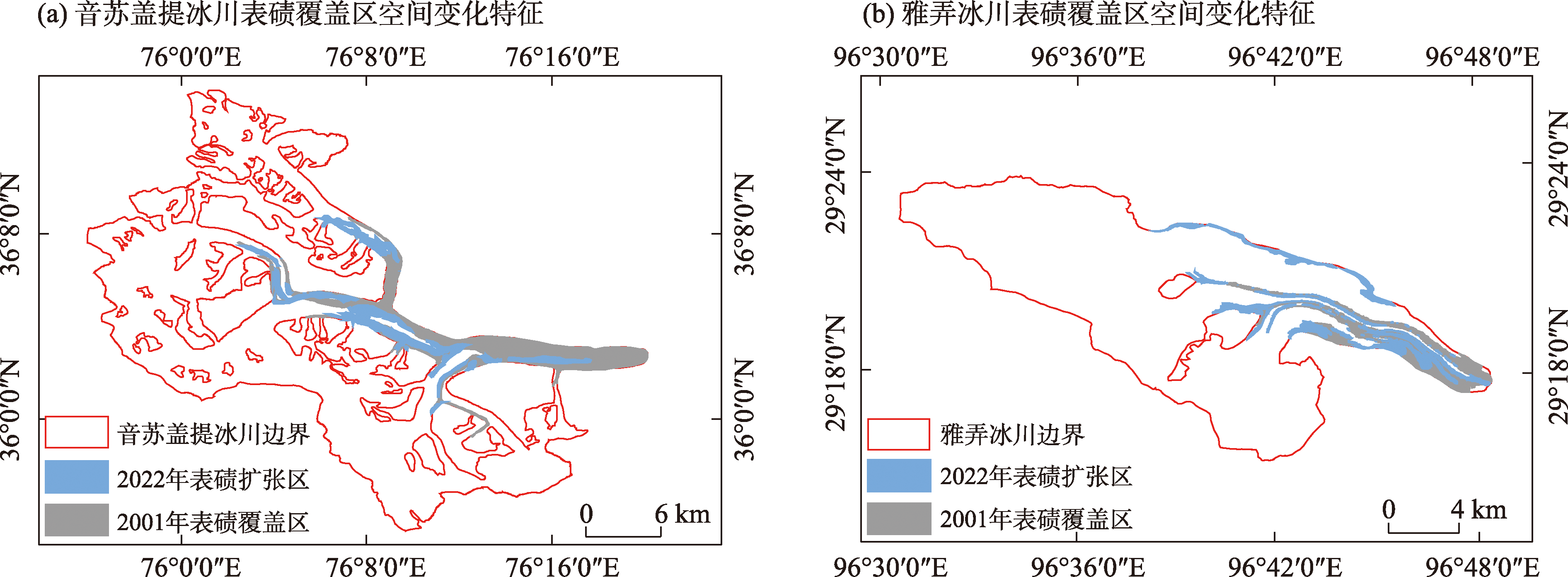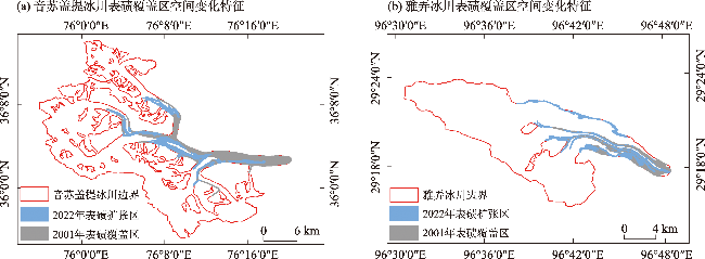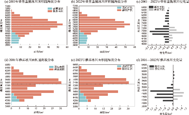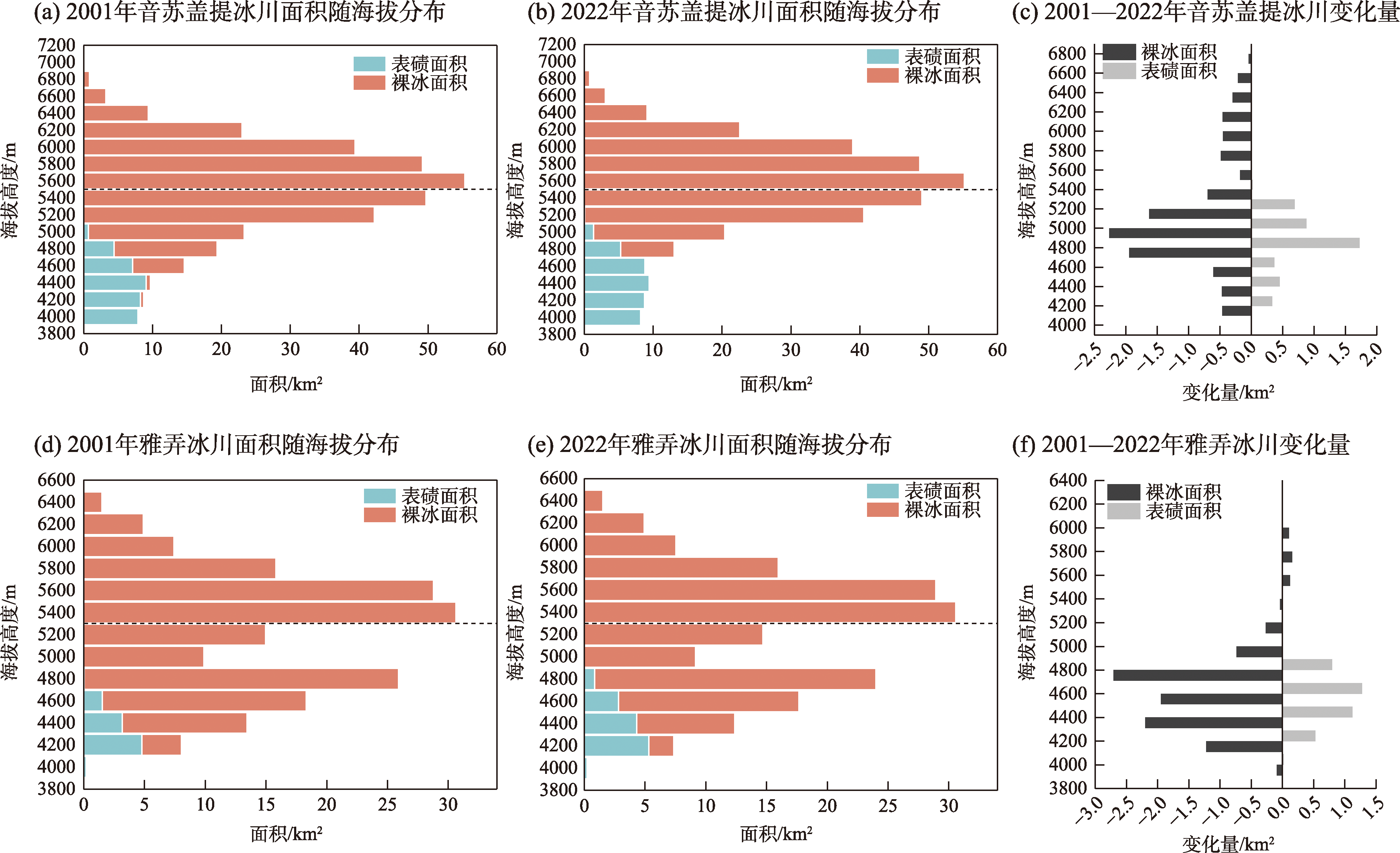 表4 2001—2022年音苏盖提冰川和雅弄冰川面积变化Tab. 4 Changes in the area of Yinsugeti Glacier and Yarong Glacier during 2001-2022 |