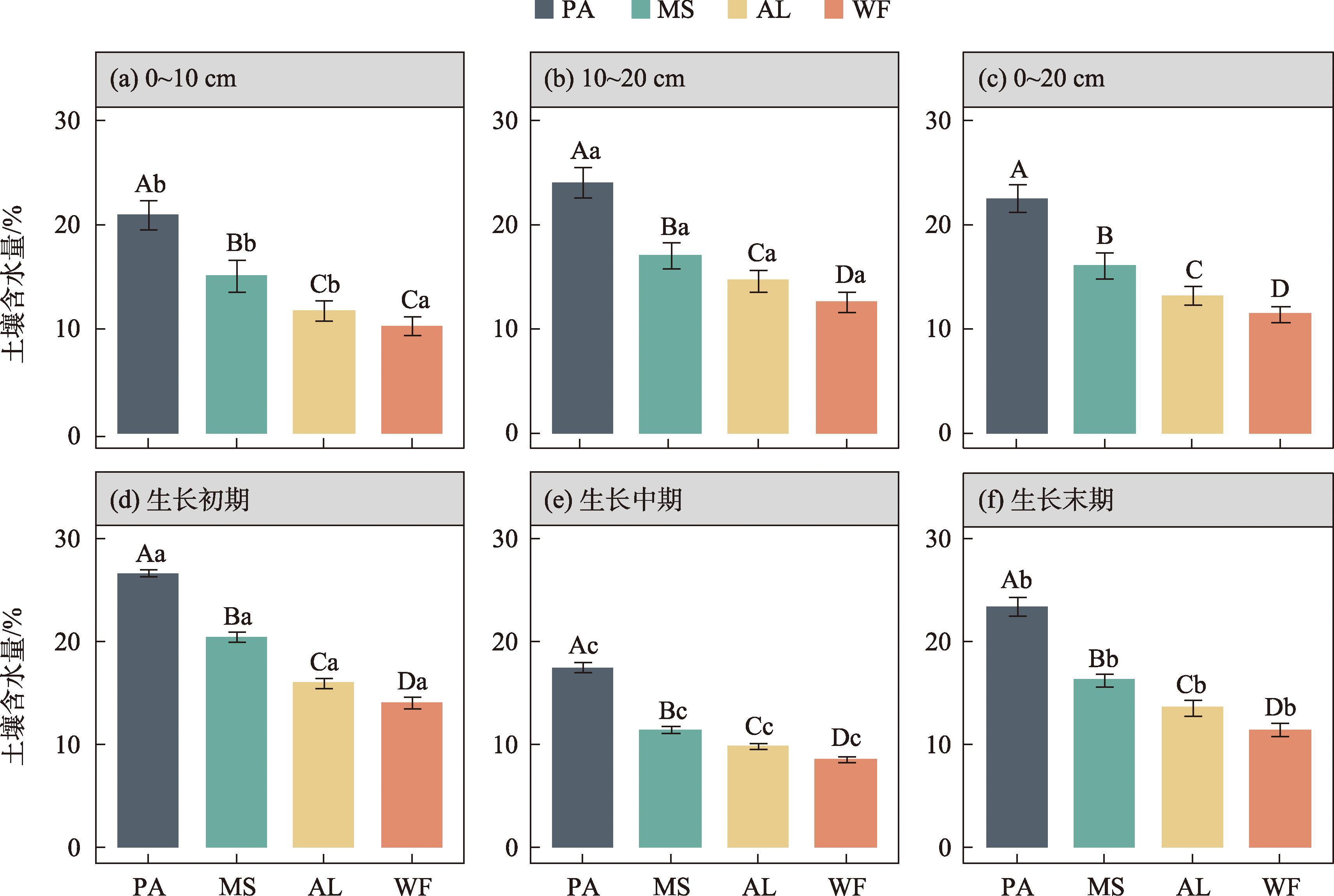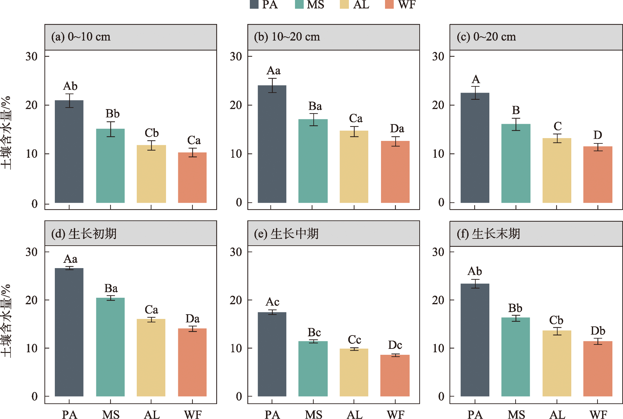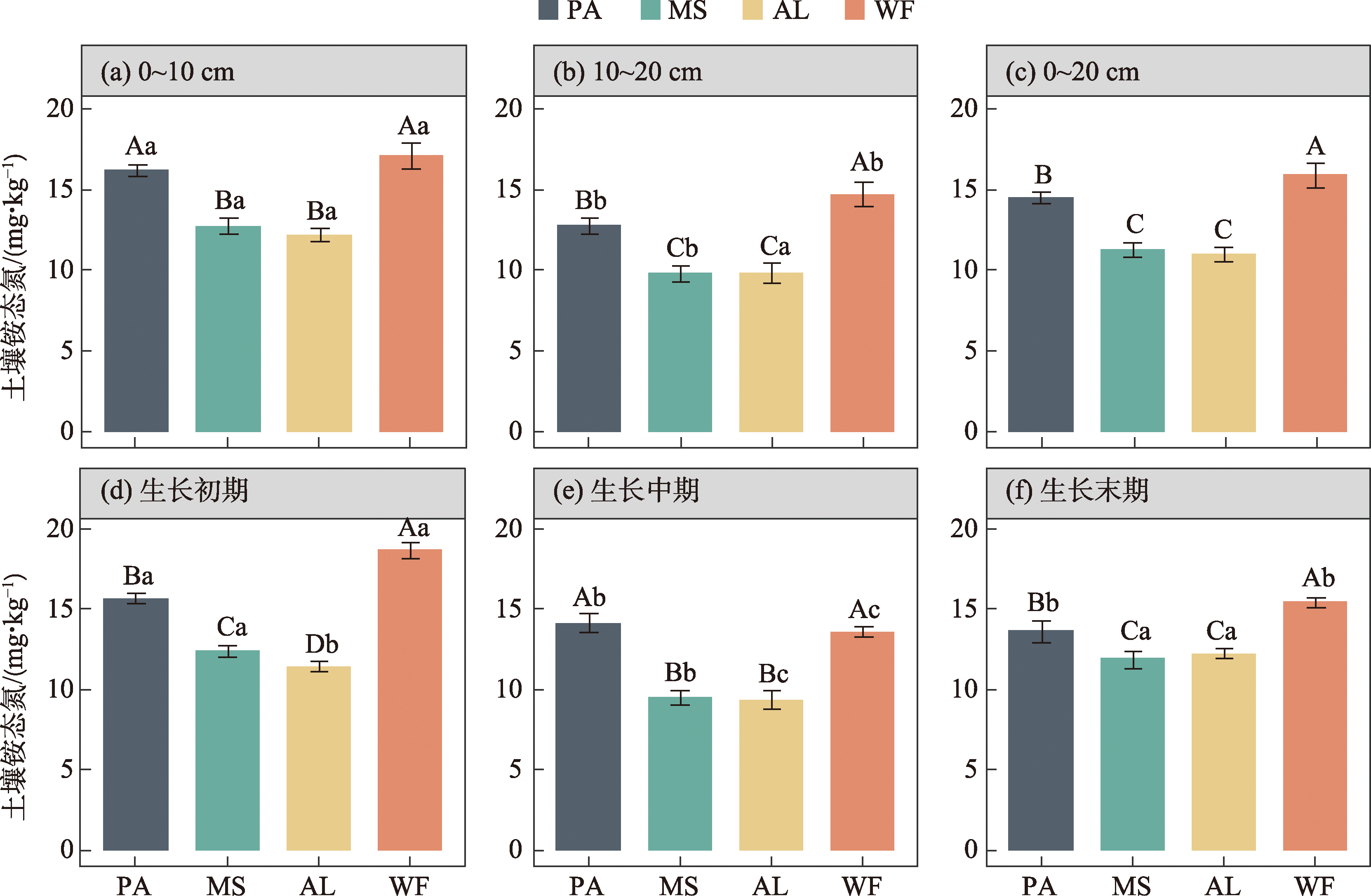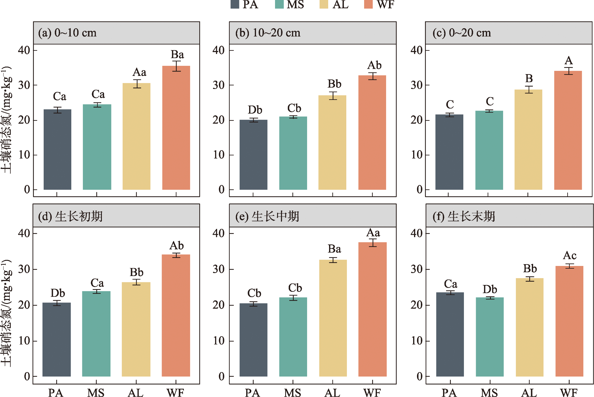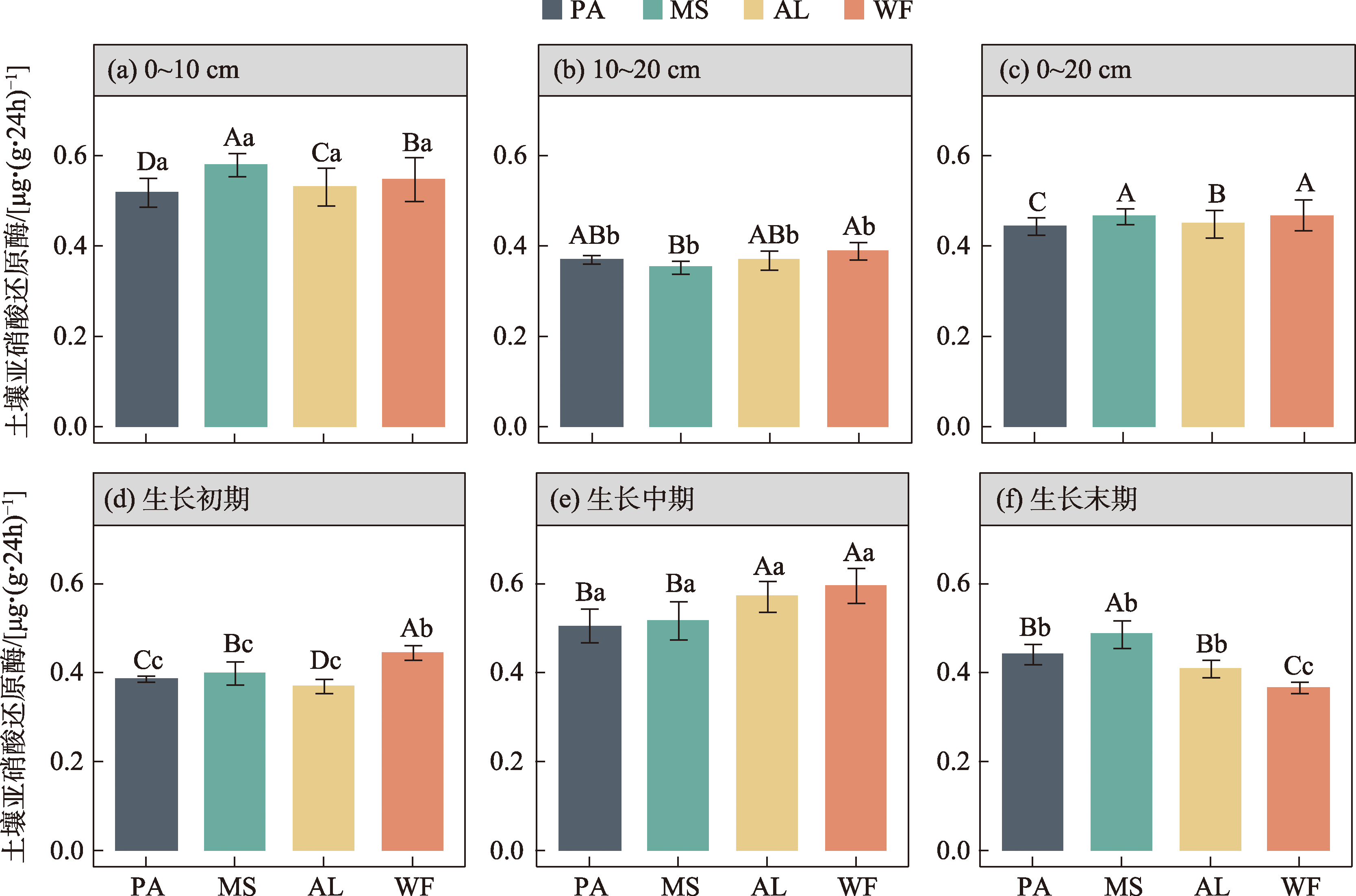氧化亚氮(N2O)是大气中重要的温室气体之一,对全球气候变暖具有显著影响。土地利用方式的改变是影响N2O排放的关键因素,尤其是在生态系统脆弱的半干旱地区,其影响机制更为复杂。然而,针对我国半干旱区复杂多样的土地利用方式如何影响土壤N2O排放,其中影响N2O排放的关键驱动因子,目前尚缺乏系统研究。为此,本文以陇中黄土高原四种典型土地利用方式:云杉林地(Picea asperata)、苜蓿草地(Medicago sativa)、撂荒地(Abandoned land)、小麦地(Wheat field)为研究对象,采用静态箱-气相色谱法监测土壤N2O通量,结合土壤理化性质数据,揭示不同土地利用方式下调控土壤N2O排放的关键驱动因子。 结果表明:(1) 与撂荒地相比,云杉林地和苜蓿草地显著提高了土壤含水量,而小麦地则增加了铵态氮(NH4+-N)和硝态氮(NO3--N)的含量。(2) 与撂荒地相比,苜蓿草地和小麦地显著提升了硝酸还原酶(NR)和亚硝酸还原酶(NIR)活性,且各处理的NR和NIR活性均随土层加深而降低。(3) 在不同土地利用方式下,土壤N2O通量随植被生长阶段呈先增后降的趋势。相较于撂荒地,云杉林地和苜蓿草地的土壤N2O总排放量分别减少了34.2%、23.3%,而小麦地则显著增加了32.47%。(4) 随机森林结果表明,土壤温度对土壤N2O排放通量的影响最大。相较于撂荒地和小麦地,人工林地和草地表现出更好的减排效应。在未来的植被恢复和生态修复过程中,应注重“农林草”土地利用方式的分配比例,适当提高人工林地和草地的占比,以实现生态效益与减排效应的双重目标。