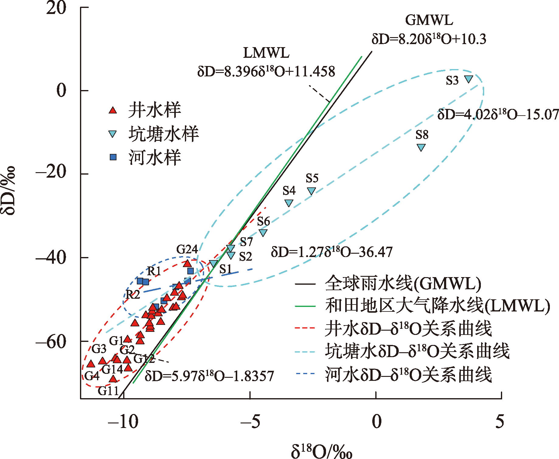 表2 不同水体δD、δ18O和d-excess参数统计Tab. 2 Statistics of δD、δ18O and d-excess parameters of different water bodies |