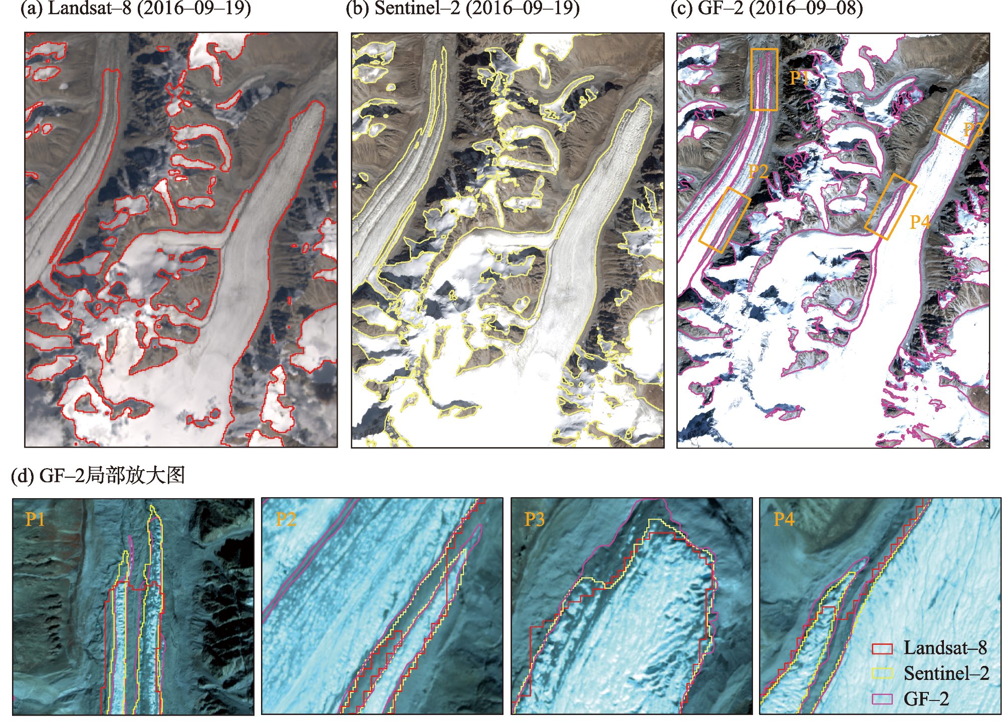 表2 不同遥感数据的冰川制图精度对比Tab. 2 Comparisons of mapping accuracies with different types of satellite data |
