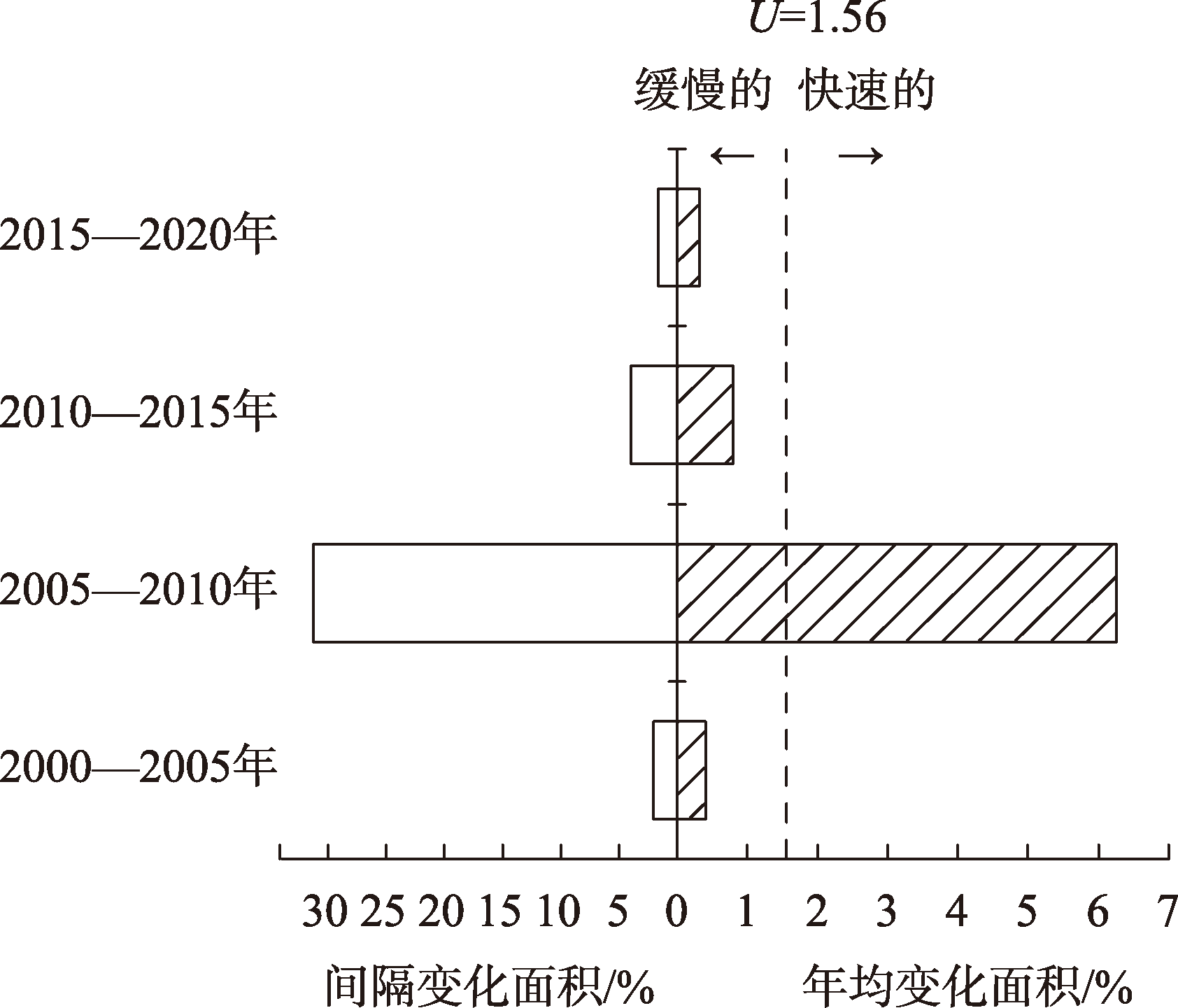 | 变化量/km2 | 动态度/% | 变化量/km2 | 动态度/% | 变化量/km2 | 动态度/% | 变化量/km2 | 动态度/% | ||||