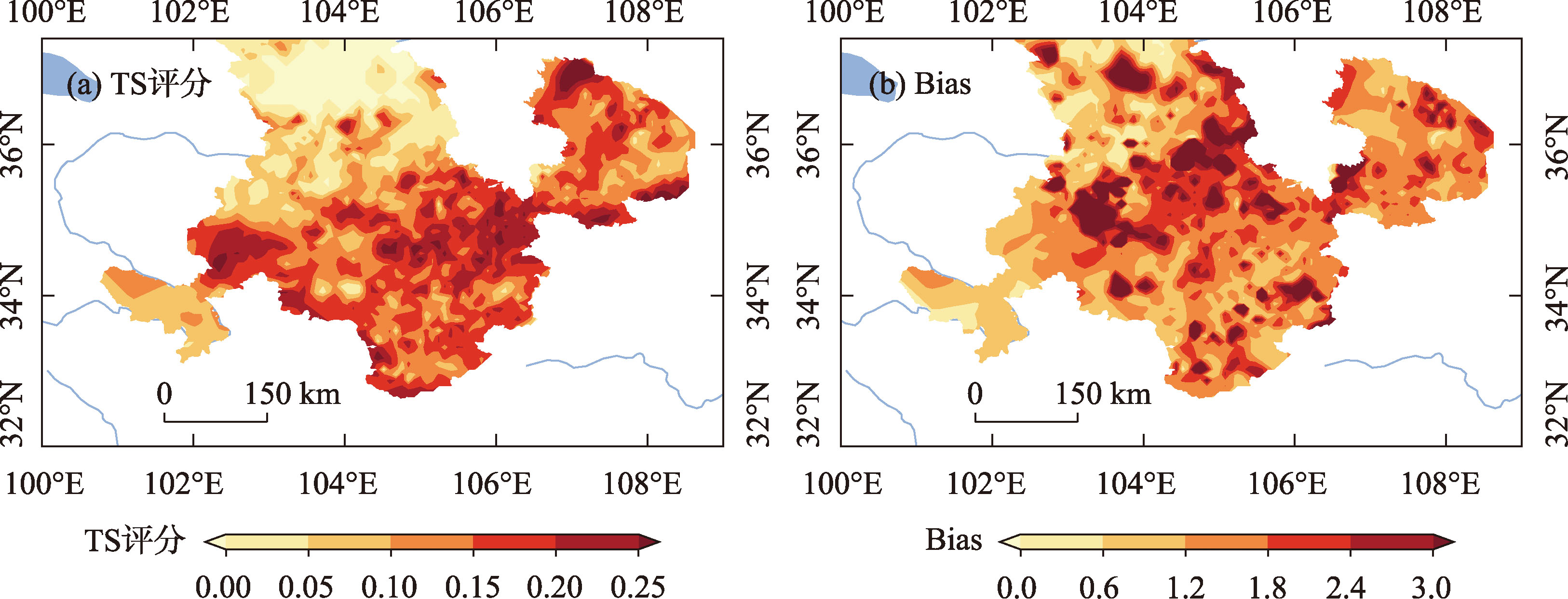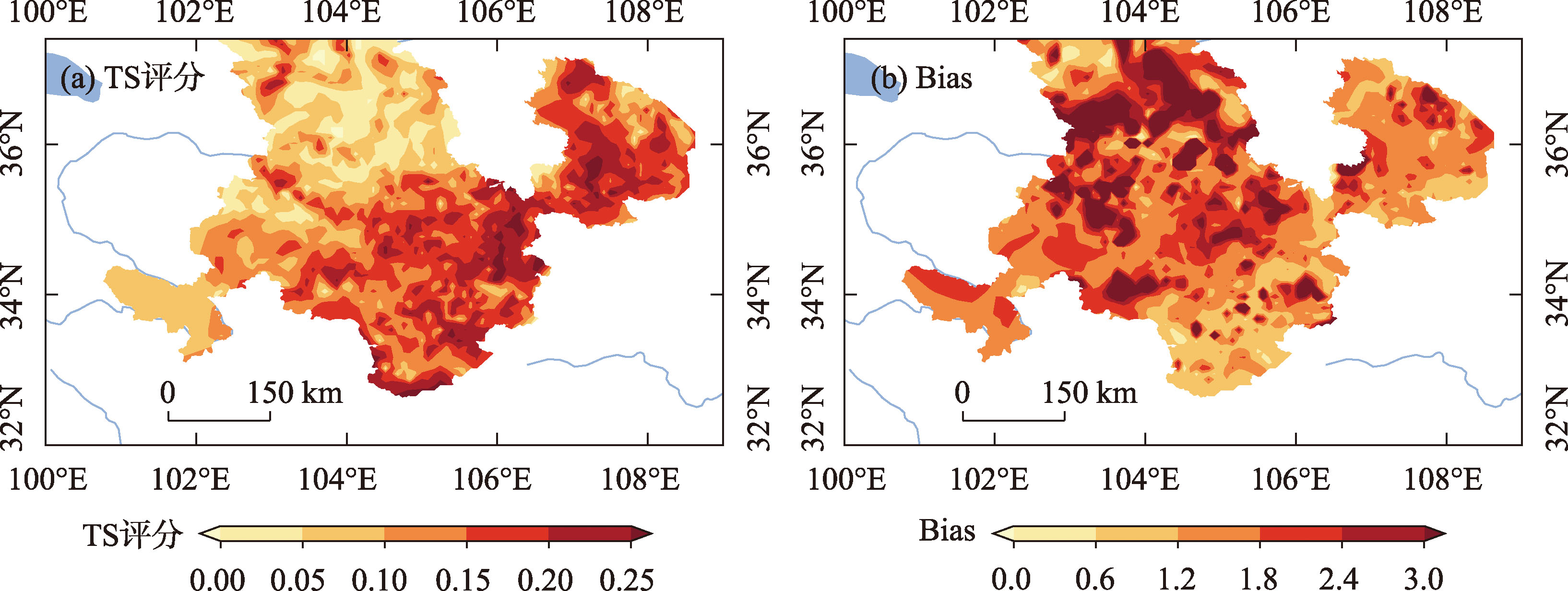 两种中尺度模式对甘肃河东暴雨日降水预报偏差精细化评估