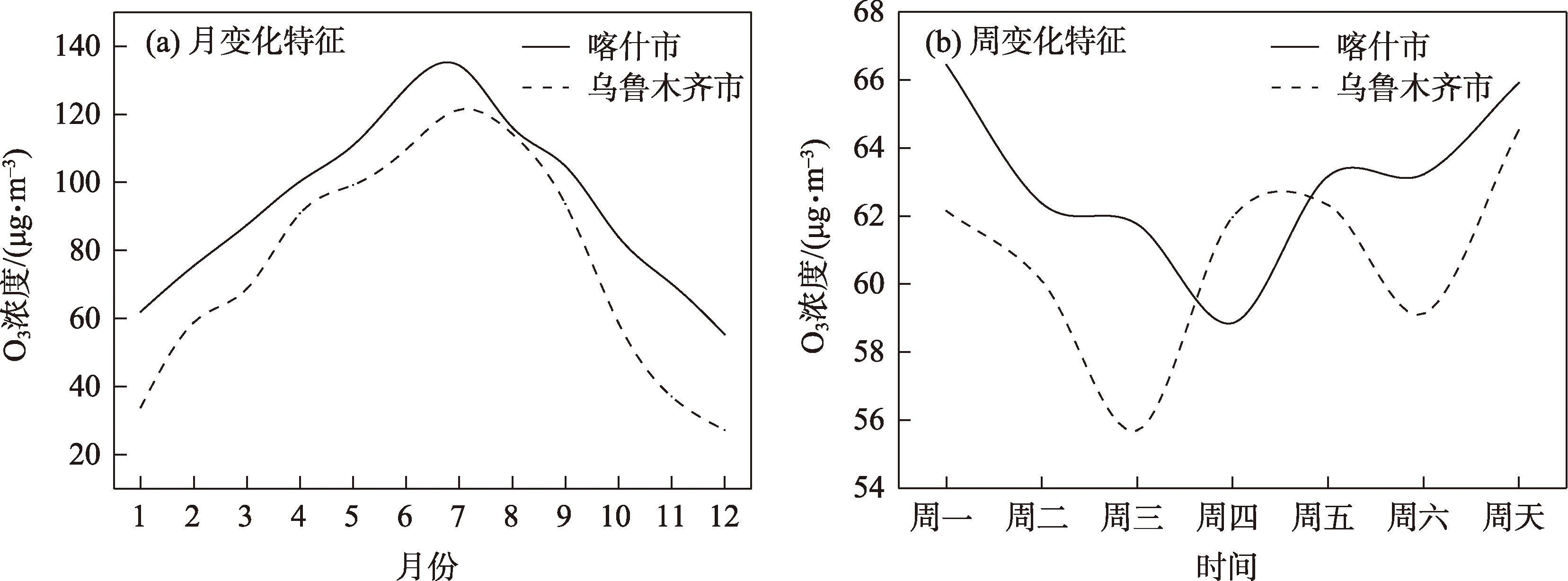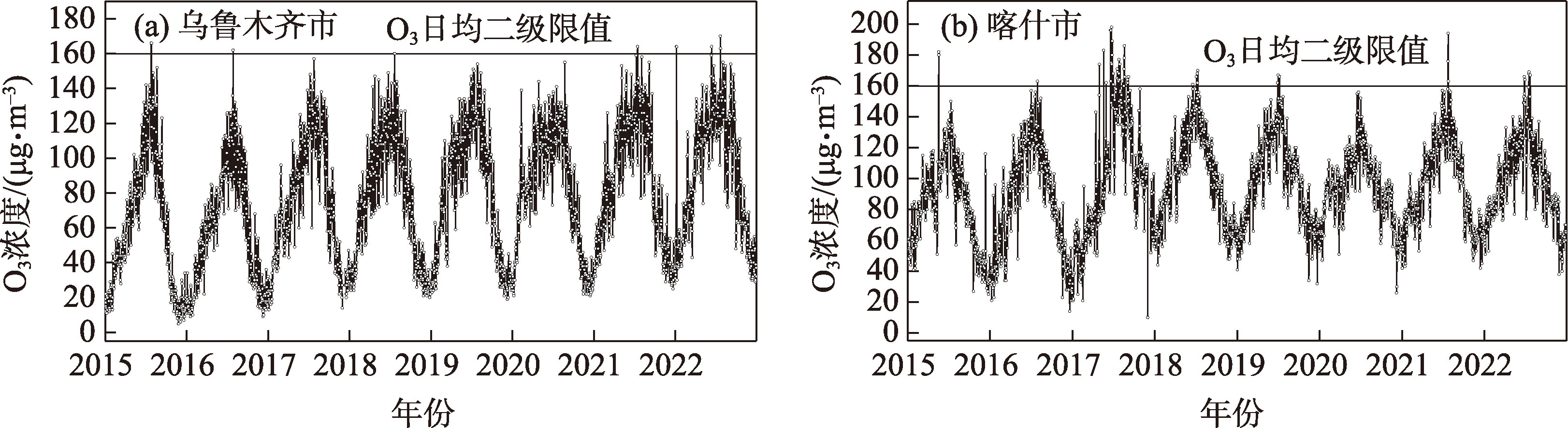 乌鲁木齐市和喀什市近地面O3变化特征及潜在源研究