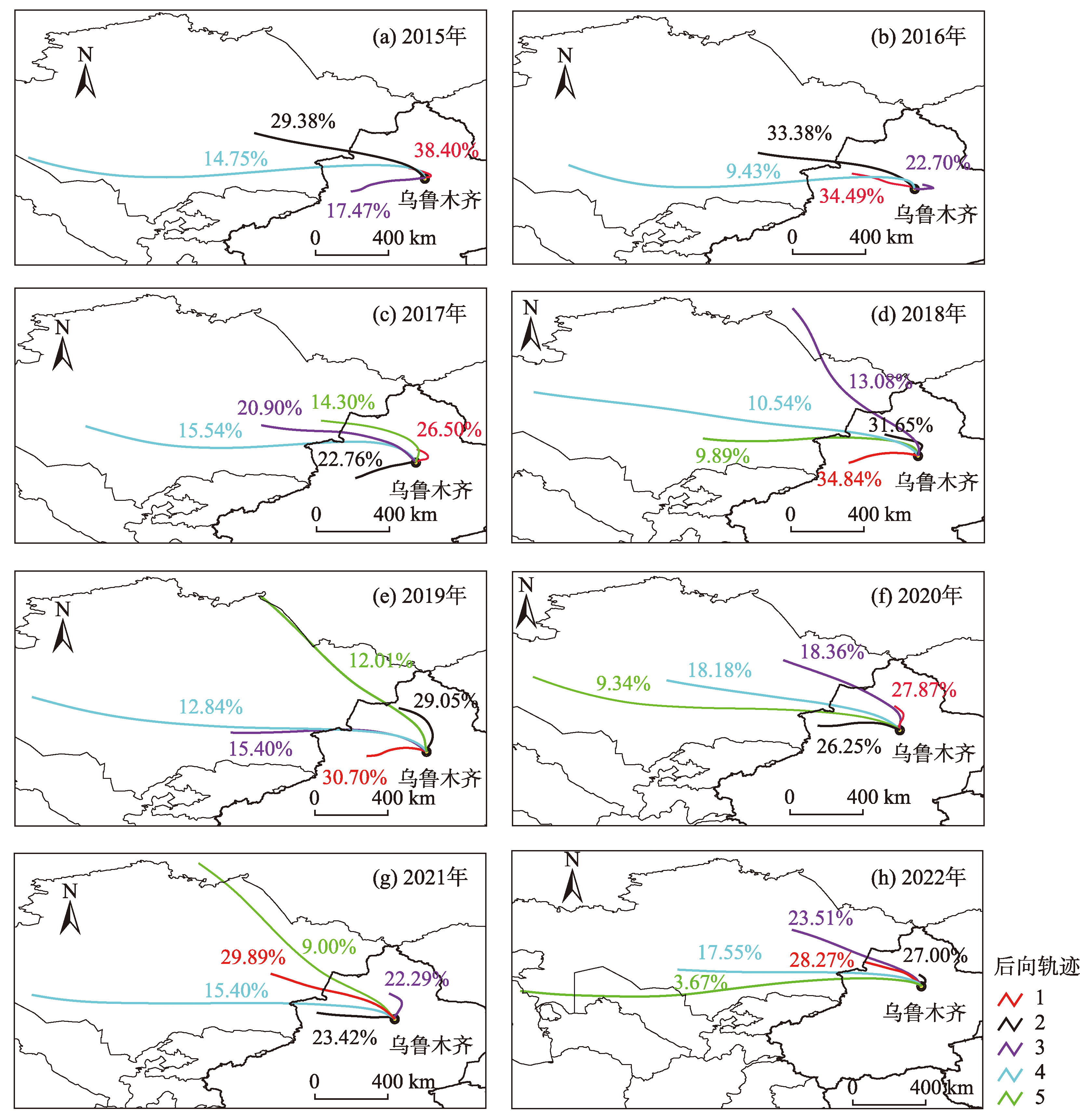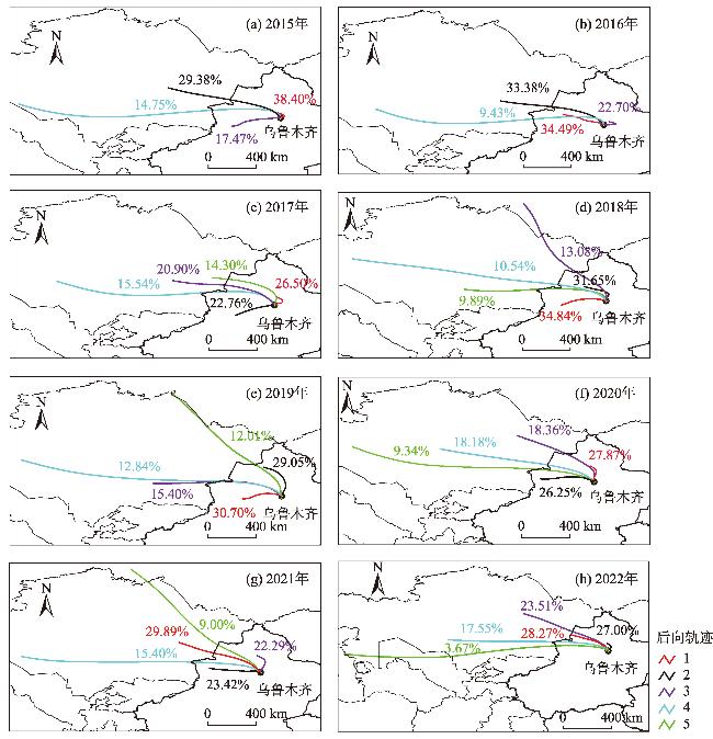 近地面O3对我国空气质量的影响愈发严重,成为了大气污染治理的首要污染物,新疆虽位于我国西北地区,但近年来O3问题时有发生,特别是乌鲁木齐市和喀什市。因此,对乌鲁木齐市和喀什市O3的变化特征及潜在来源进行分析,运用后向轨迹模型探讨乌鲁木齐市和喀什市O3的传输路径、潜在源区及其影响因素。结果显示:(1) 时间变化上,2015—2022年乌鲁木齐市和喀什市O3浓度在2018年达到峰值,2018年后小幅度下降,之后变化趋于稳定,O3浓度季节变化明显,夏季最高,存在“周末效应”和昼夜变化。(2) 后向轨迹分析结果表明,2015—2022年乌鲁木齐市和喀什市的气流轨迹来源相似,长距离气流主要来自西部中亚地区,乌鲁木齐市气流轨迹中长距离输送轨迹占比31.86%,喀什市为15.42%;中短距离气流主要来自本地,乌鲁木齐市气流轨迹中中短距离输送轨迹占比68.14%,喀什市为84.58%。(3) 乌鲁木齐市和喀什市潜在源区覆盖面积大,乌鲁木齐市以本地源为核心潜在源贡献区域,喀什市以外来源和本地源为潜在源贡献区,2022年较2015年相比高值潜在源区范围有一定扩大。