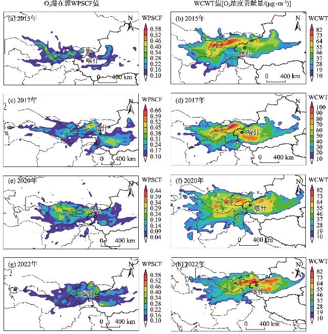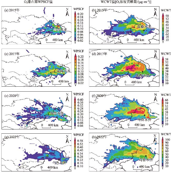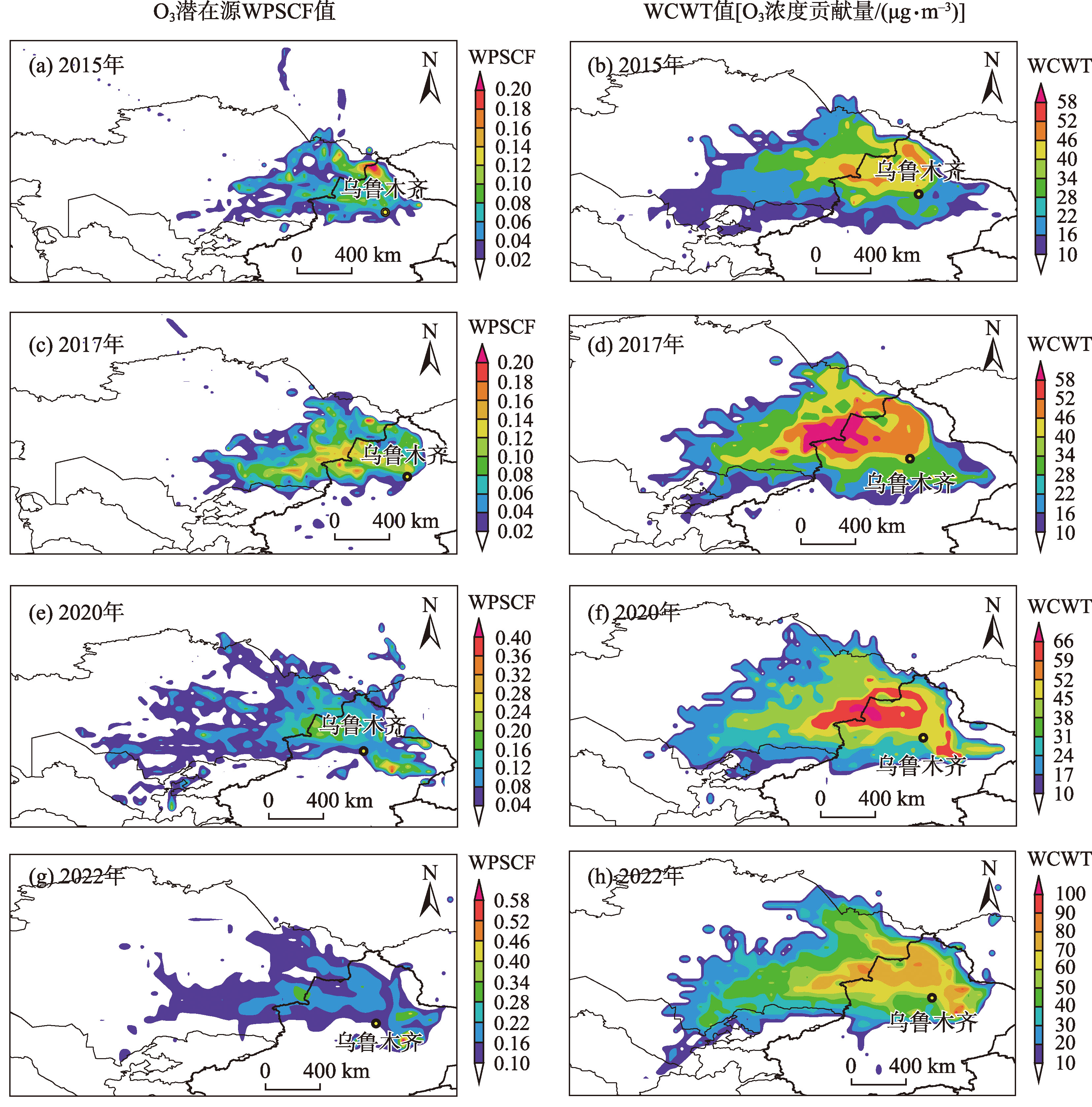 Key words: Urumqi; Kashgar; near ground O3; backward trajectory; potential source area