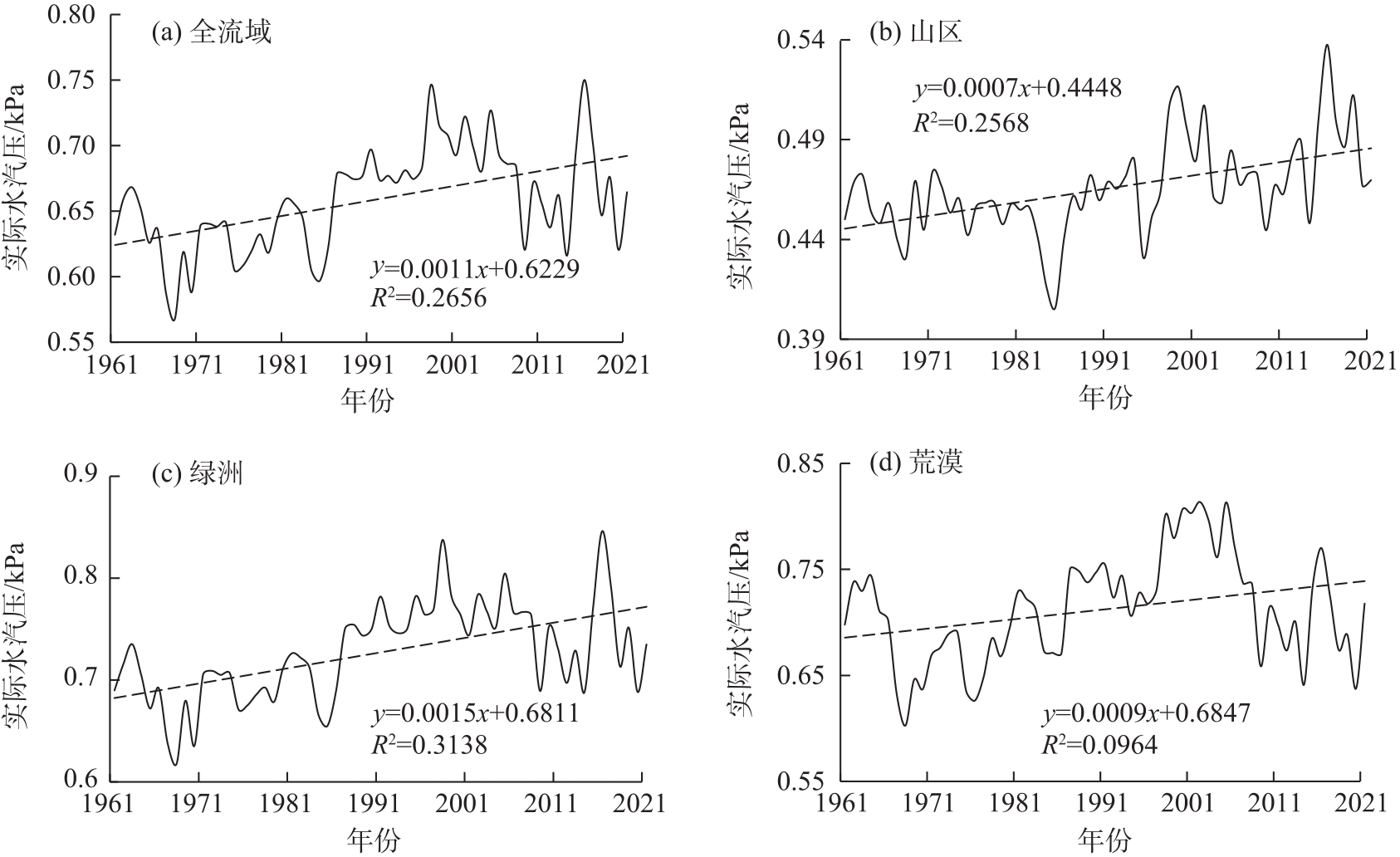 关键词: 饱和水汽压差(VPD); 实际水汽压; 变化特征; 影响因子; 开都-孔雀河