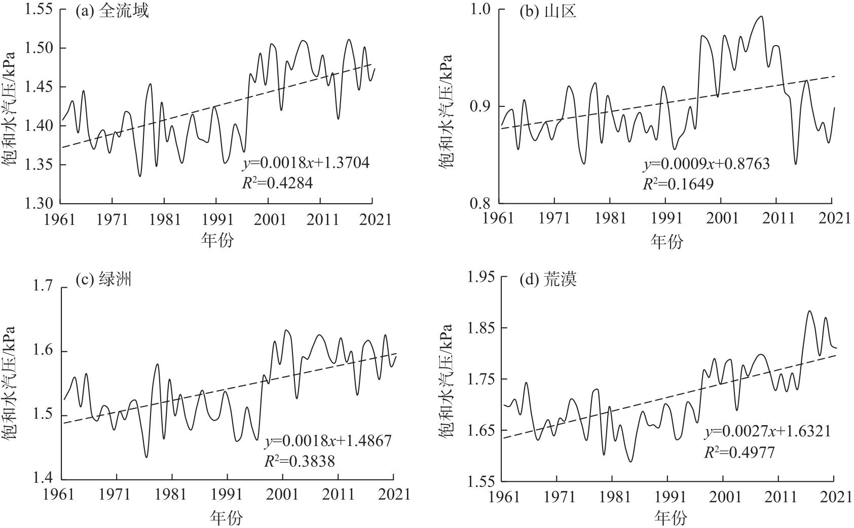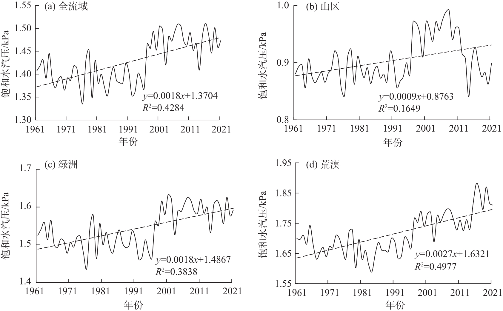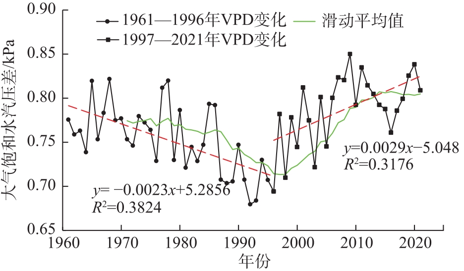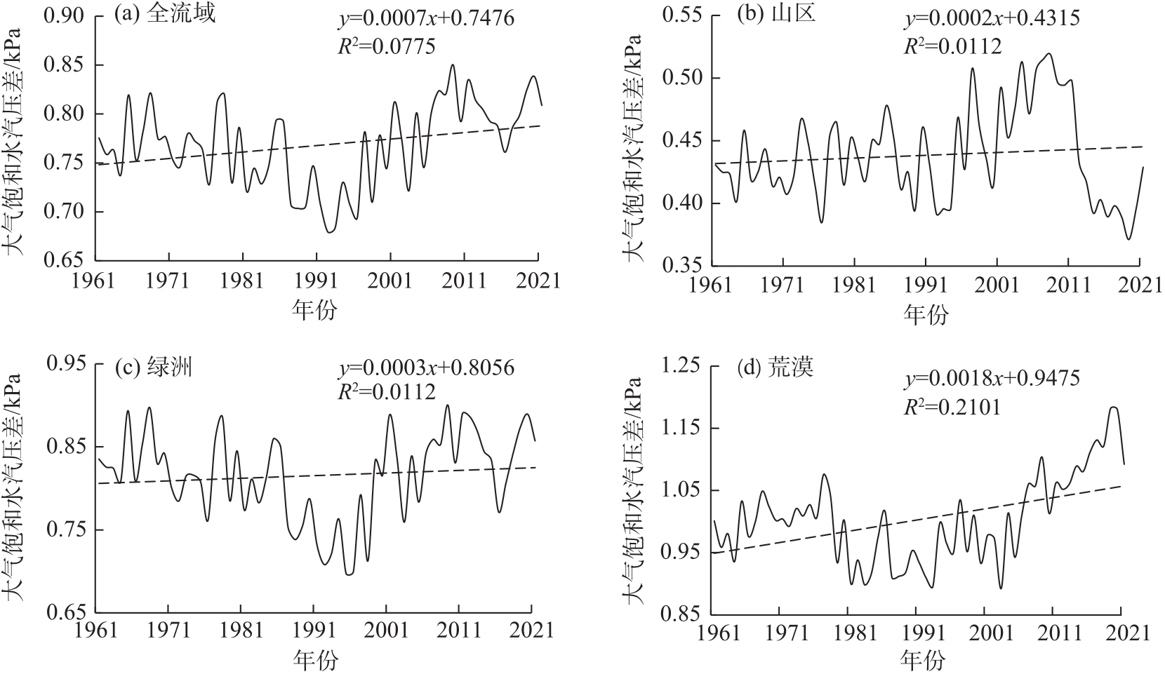 图4 1961—2021年新疆开都-孔雀河流域及其分区大气饱和水汽压差变化趋势Fig. 4 Variation trend of VPD in Kaidu-Kongque River Basin and its subregions in Xinjiang from 1961 to 2021 |