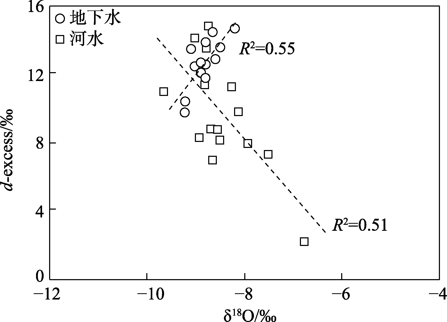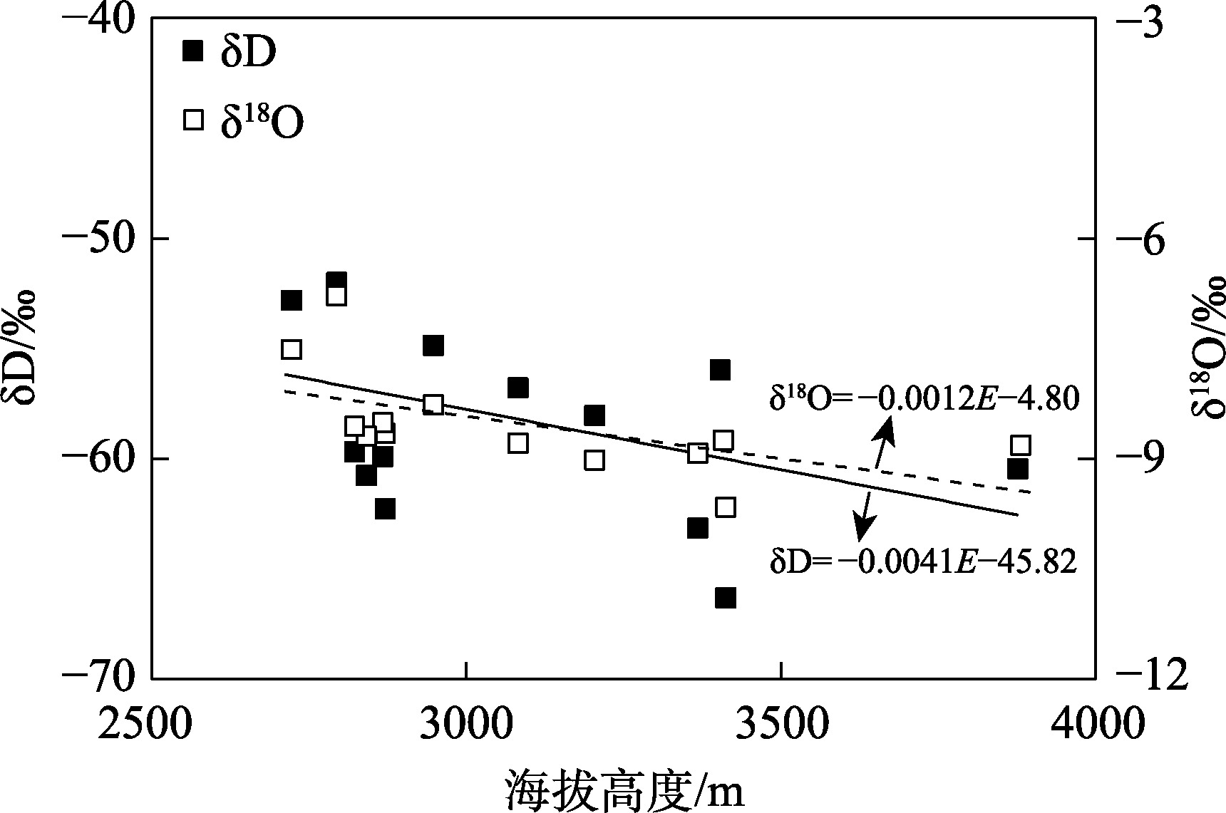 表1 那河流域δD、δ18O和d-excess统计Tab. 1 The value of δD、δ18O and d-excess in the Nalenggele River |