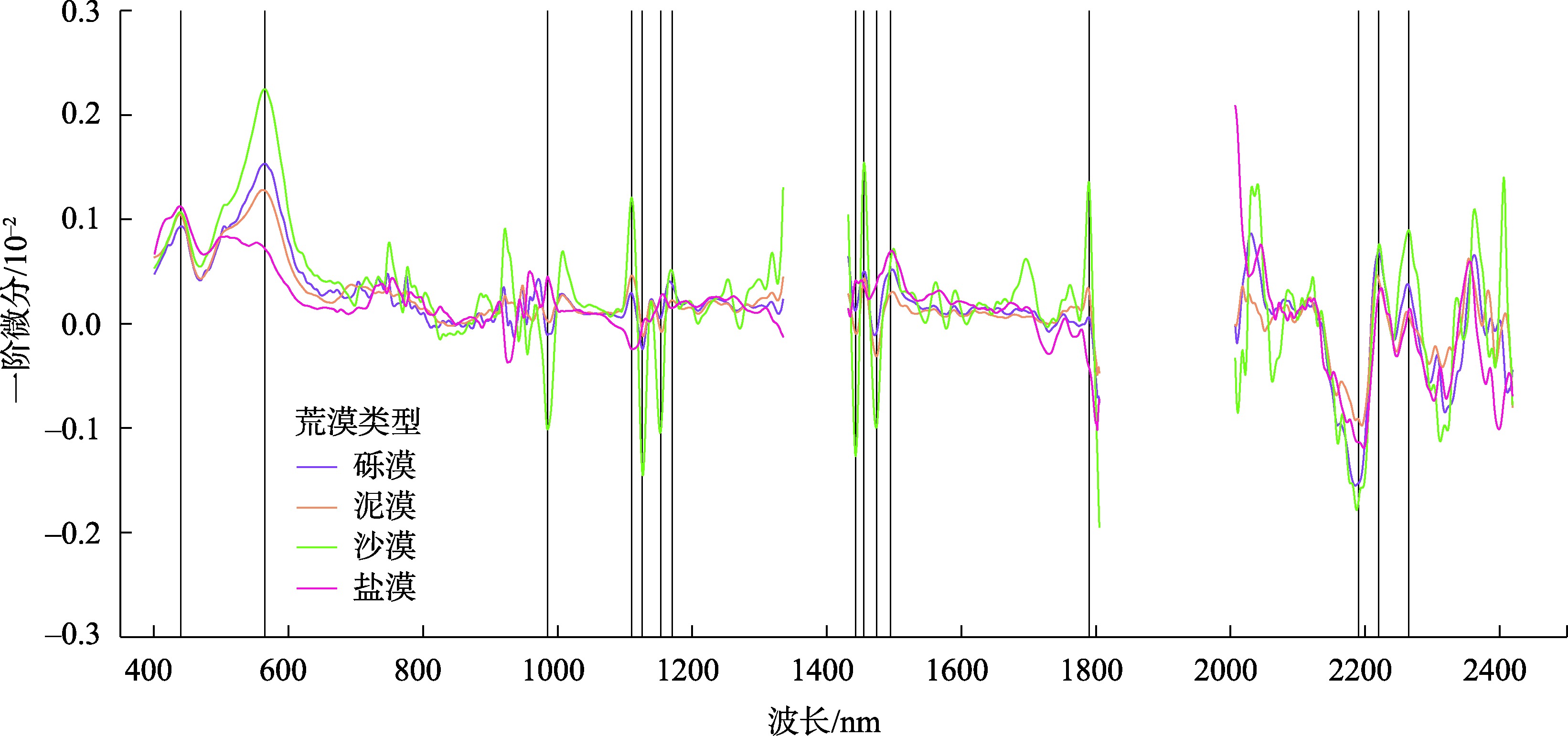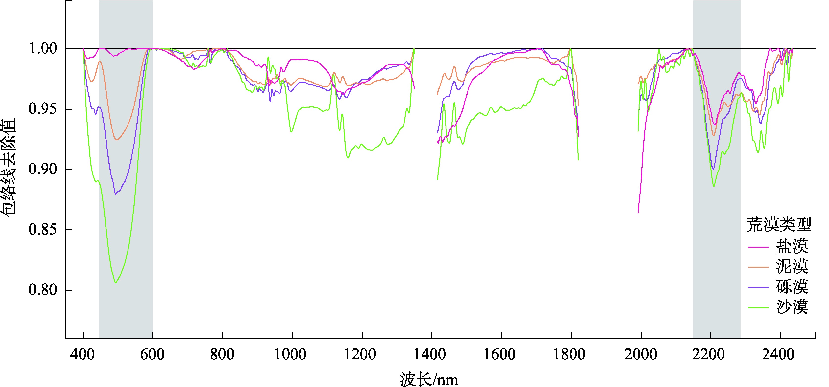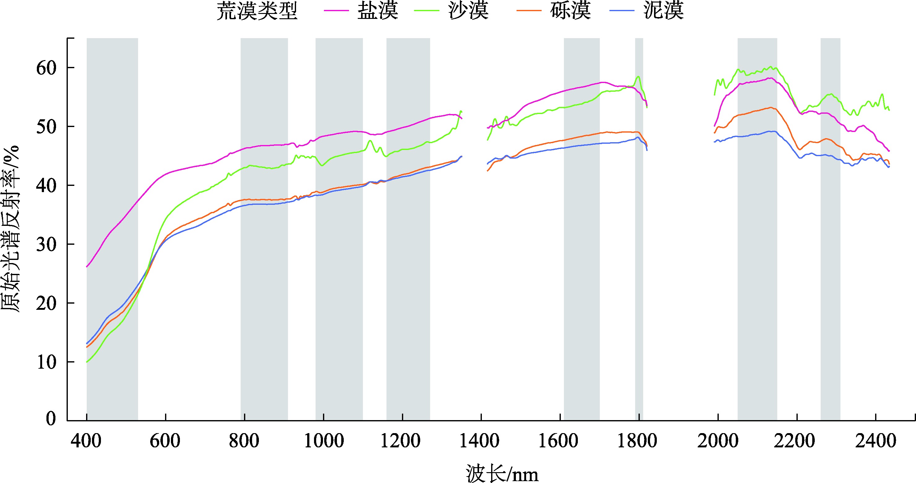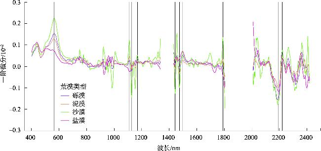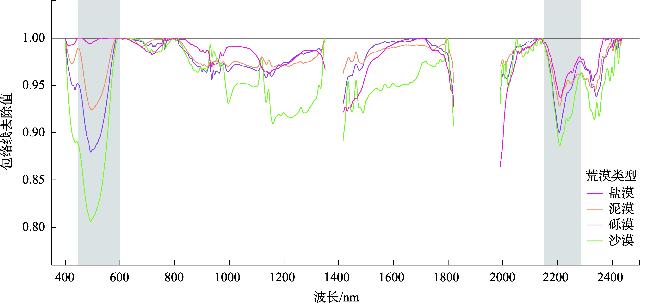表3 不同荒漠类型反射率累积差较大的波段区间Tab. 3 Band intervals with large cumulative differences between desert types |