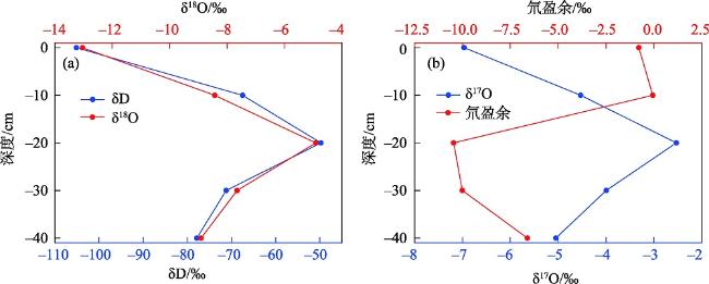 基于蒸发量及其水汽同位素原位观测,研究了黄河源区王家乡典型日近地表土壤-水体-植被蒸散发特性,探讨了土壤-植被-水体蒸散发水汽同位素特征,计算了蒸散发和迁移水汽占比。研究结果表明:土壤、植被蒸散发峰值时间相对于水体蒸发峰值时间存在延迟效应,蒸散发影响土壤水深度为20 cm。不同观测对象(裸土、植被、水体、混合)蒸散发水汽同位素值存在显著性差异,植物散发过程相对土壤蒸发过程,有更加强烈的同位素分馏过程,并且蒸散发消耗土壤水深度越大,分馏效应越强,蒸发引起观测水汽δ18O、δD、δ17O先富集增大后趋于稳定,表明存在同位素平衡分馏过程,而蒸发过程氘盈余持续减小。采用逐小时瑞利分馏模型可以较好的刻画水汽同位素变化特征。水汽同位素端元混合模型计算结果表明观测站点近地表以蒸散发水汽为主,未来在水资源量调配和管理时,应更加关注气候变化对土壤蒸散发量的影响。