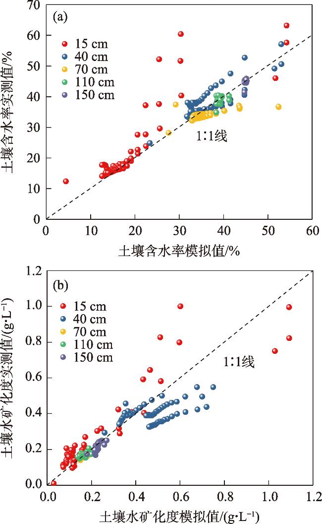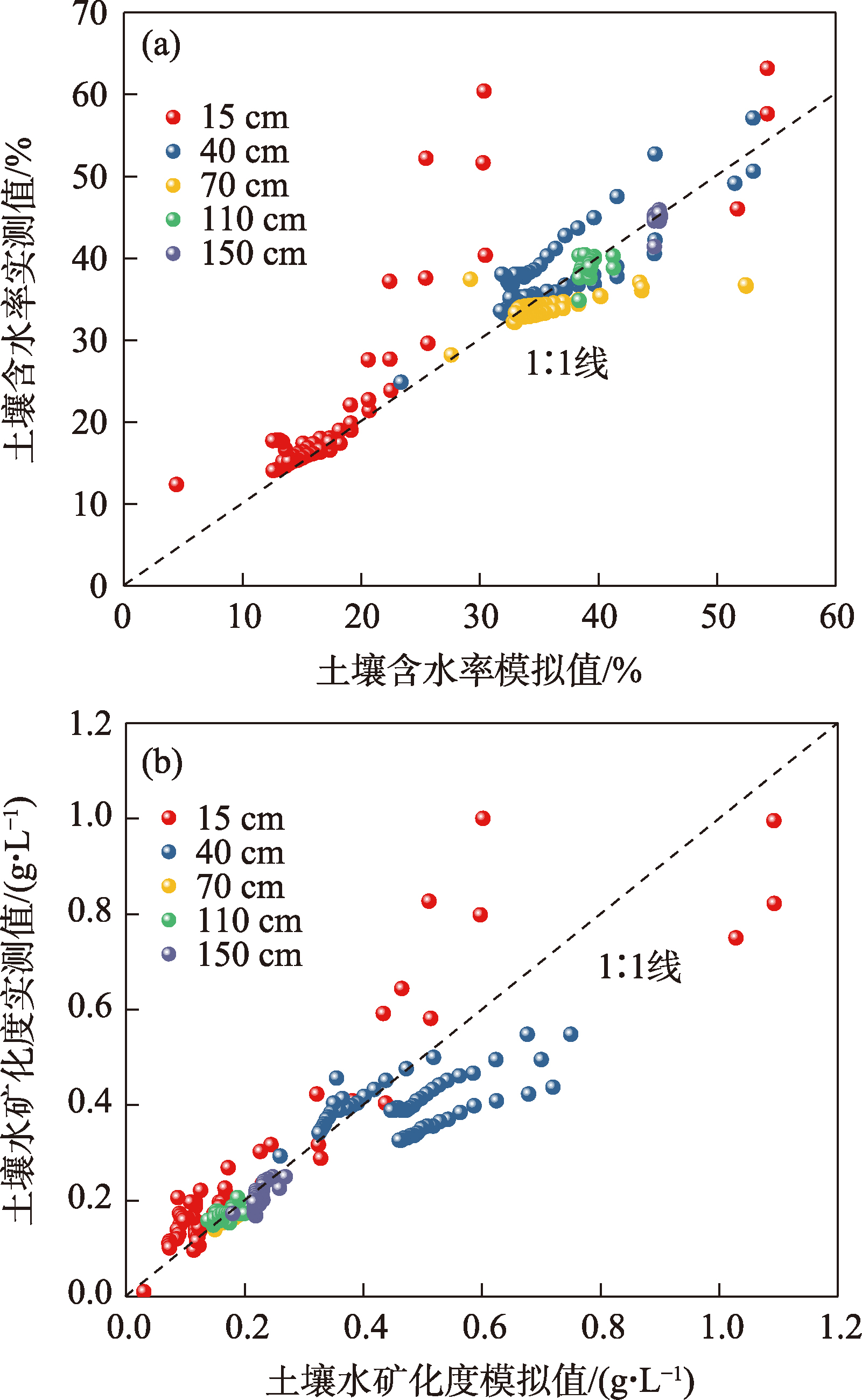 表2 不同土壤深度含水率、TDS的模拟精度检验Tab. 2 Table for accuracy verification of simulated soil moisture content and TDS at different soil depths |