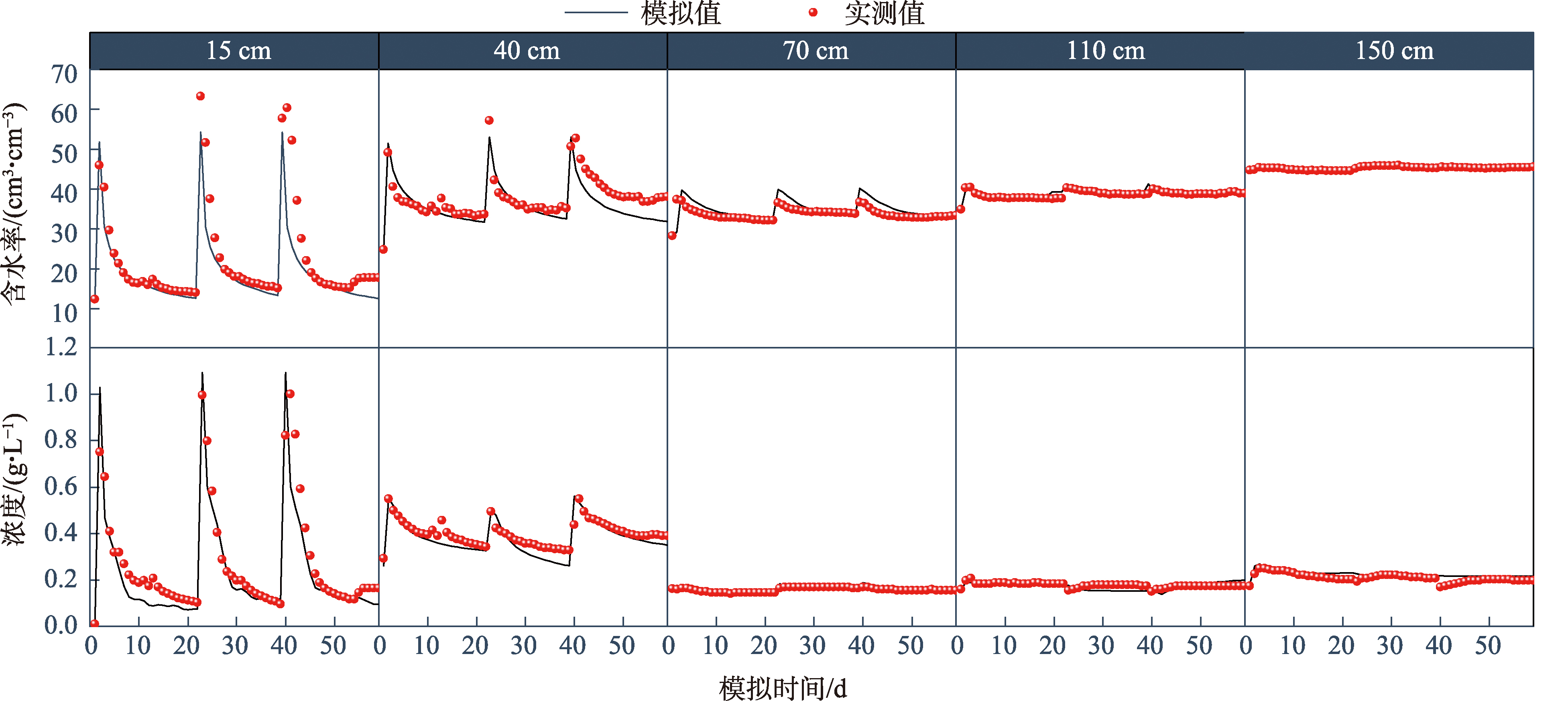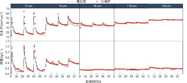 表3 校正后的土壤水力参数与溶质运移参数Tab. 3 Corrected soil hydraulic parameters and solute transport parameters |