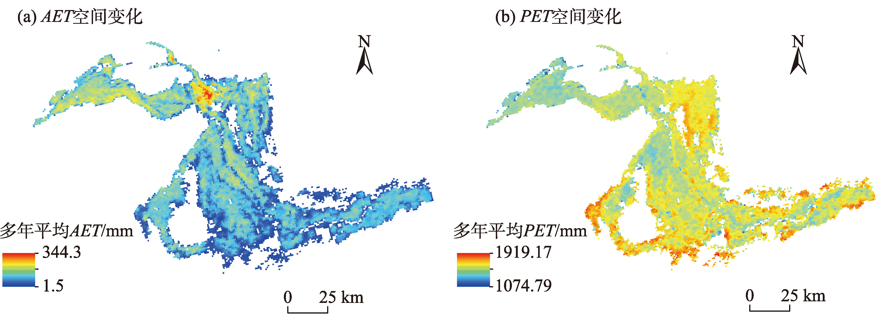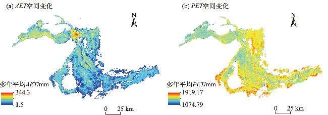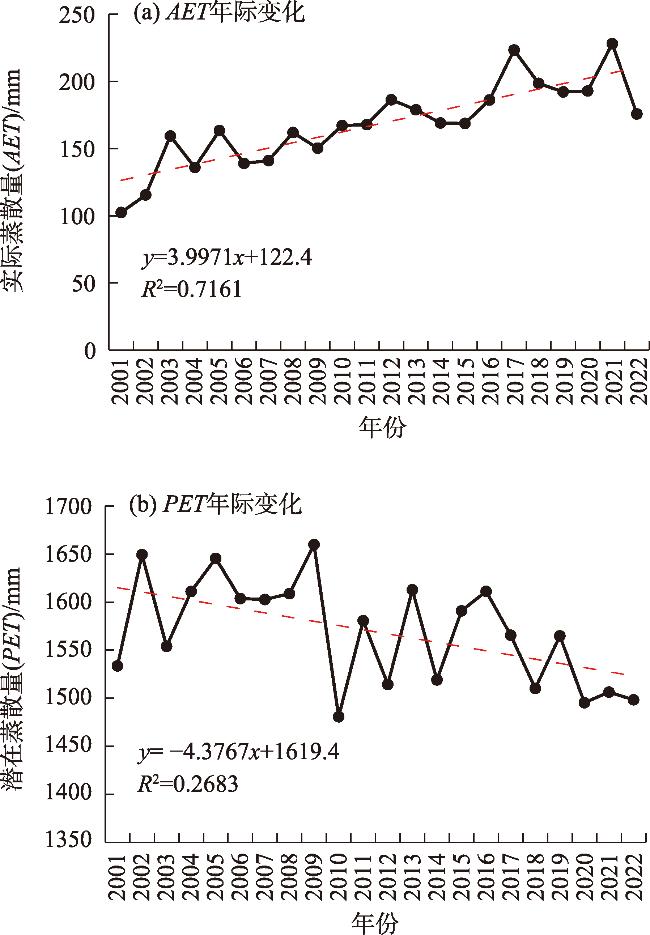 图5 阿克苏河流域年际AET和PET变化趋势Fig. 5 Interannual trends of AET and PET in the Aksu River Basin |