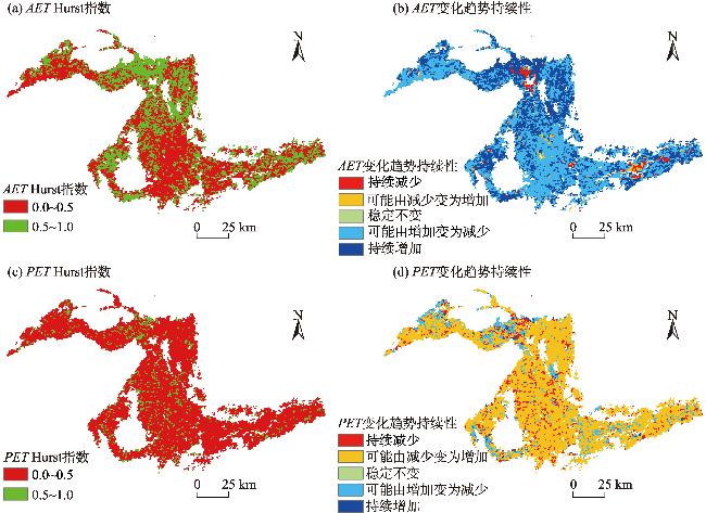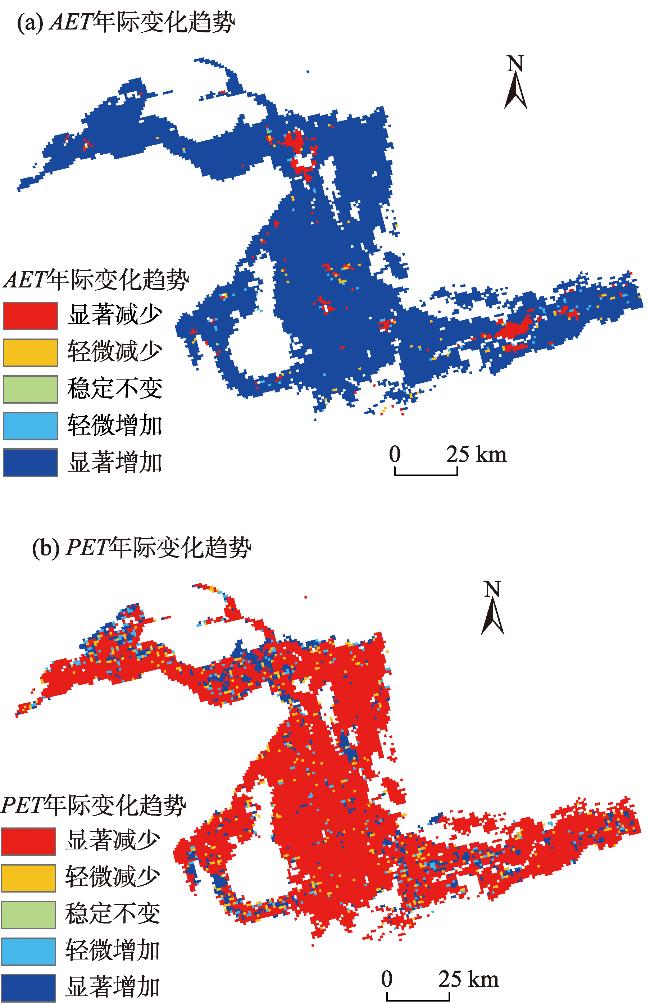 表3 阿克苏河流域年际AET和PET变化趋势分类Tab. 3 Classification of interannual AET and PET variation trends in the Aksu River Basin |