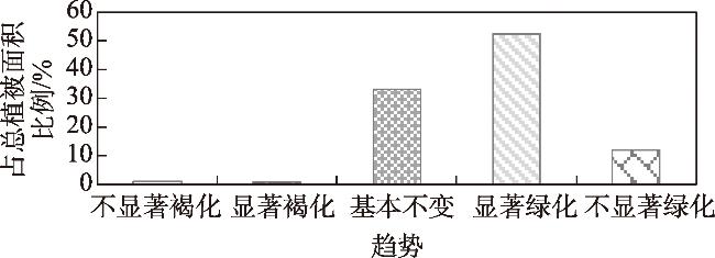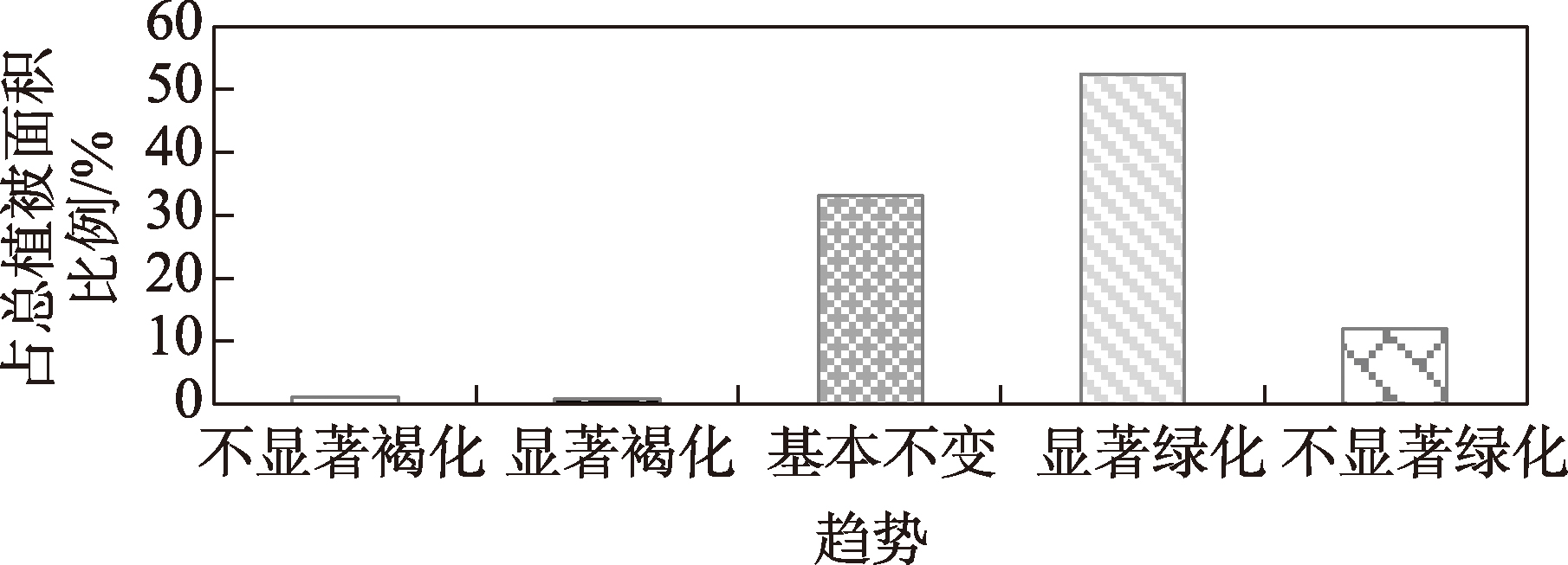 表4 柴达木盆地不同绿度植被气候模拟变化趋势Tab. 4 Climate simulation trends of different NDVI vegetation in the Qaidam Basin /[%·(10a)-1] |