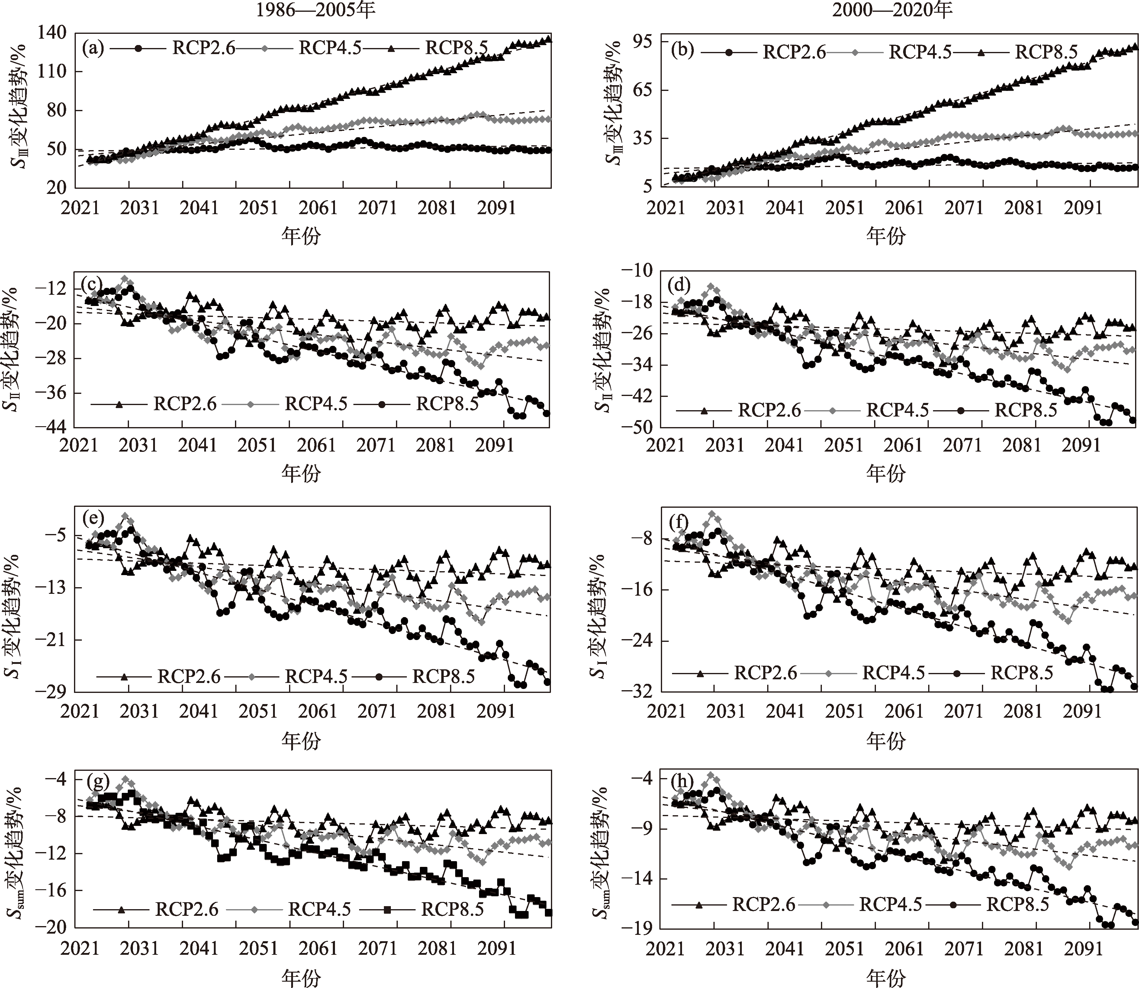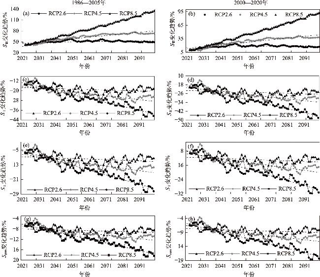 2071—2100年 | 0.870 | -0.065 | -4.214 | 0.923 | -0.068 | -4.469 |