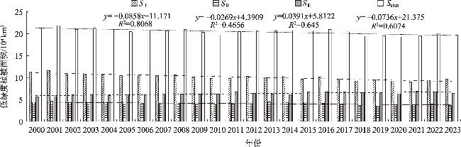 时段 | SⅡ植被面积与1986—2005年基准值比 | SⅡ植被面积与2000—2020年实测值比 | ||||