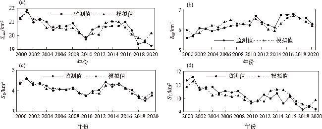 时段 | Ssum植被面积与1986—2005年基准值比 | Ssum植被面积与2000—2020年实测值比 | ||||