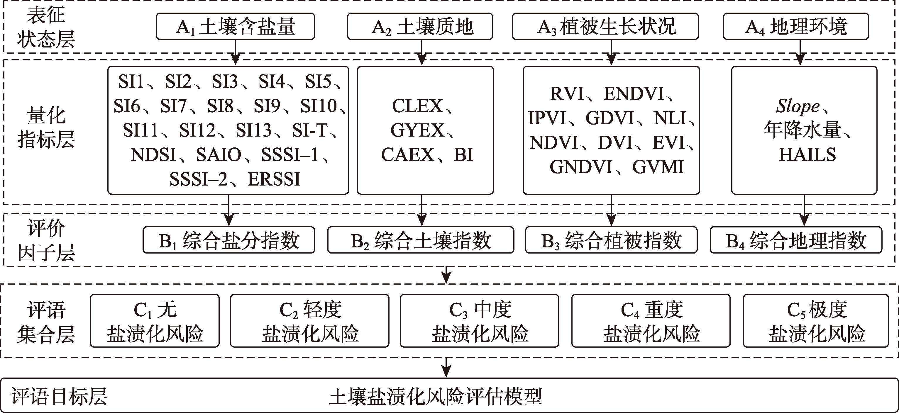 | S | 轻度盐渍化风险稳定,中度盐渍化风险(波动)减少,重度盐渍化风险(波动)增加 | |