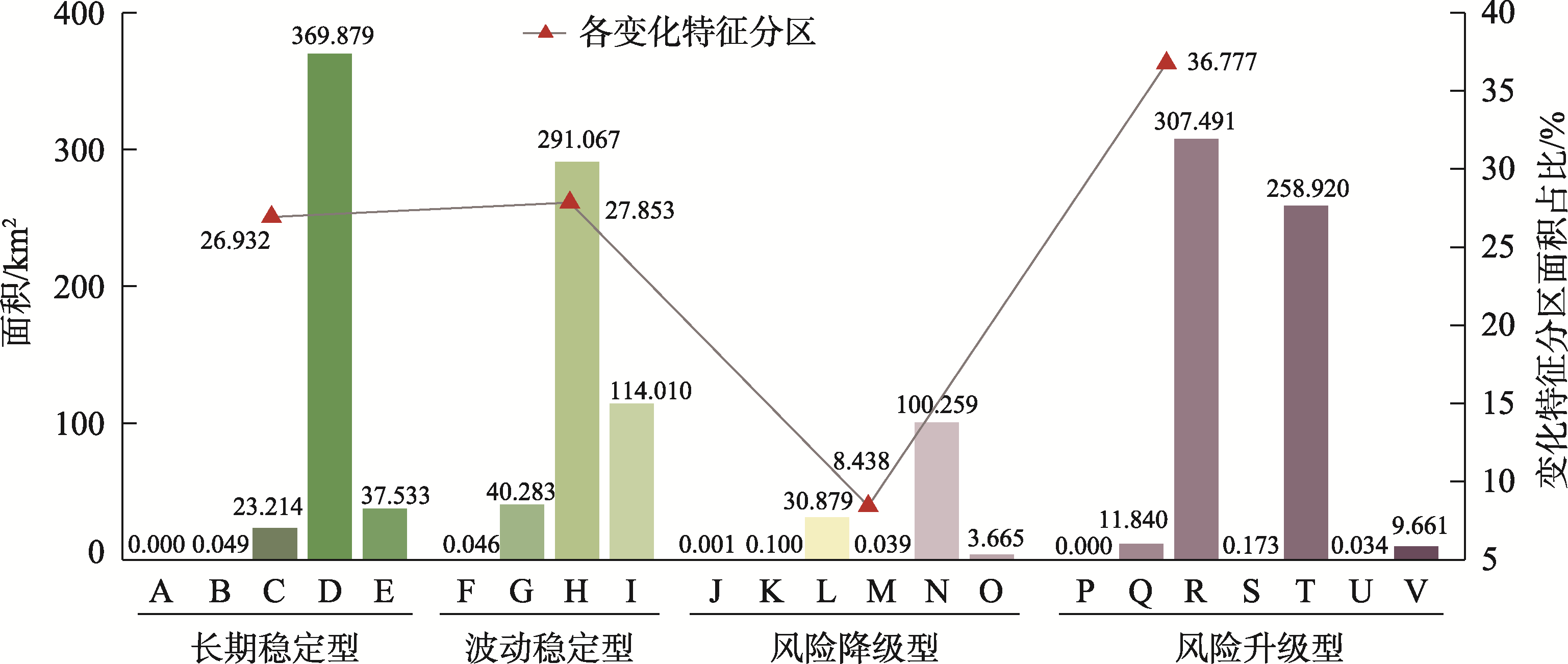 | 波动稳定型 | d | 最后一年与初始年份风险等级相同,研究期内呈波动变化 |