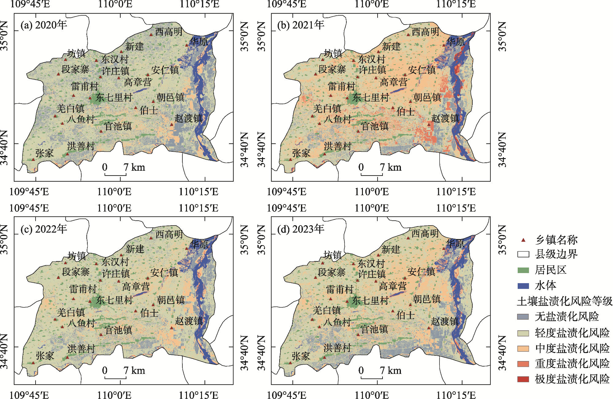 | 土壤盐渍化风险等级 | 2020年 | 2021年 | 2022年 | 2023年 | |||||||