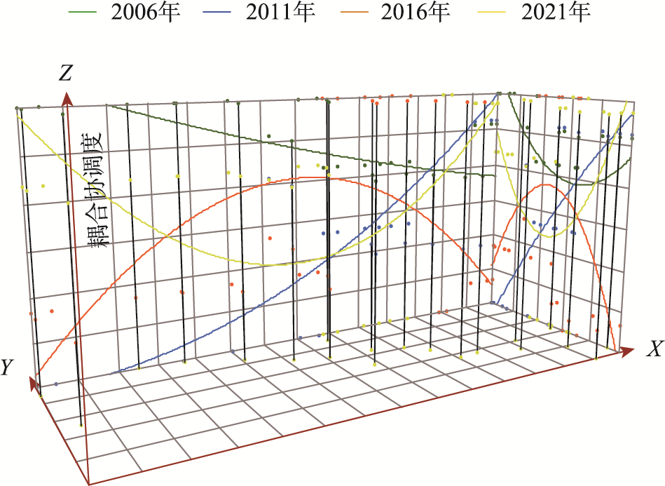 表2 系统耦合度与协调发展的区间划分评价标准Tab. 2 Evaluation criteria for the interval division of system coupling degree and coordinated development |
