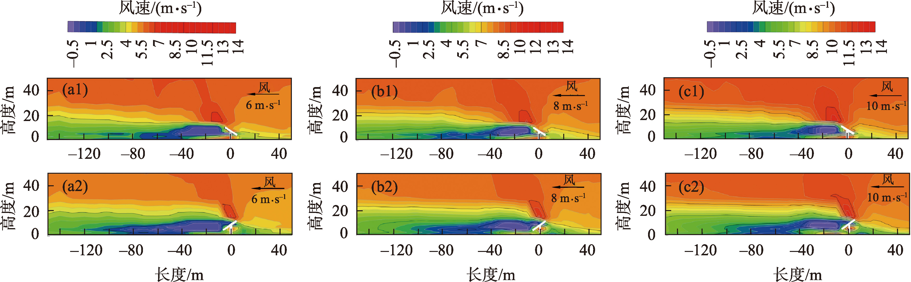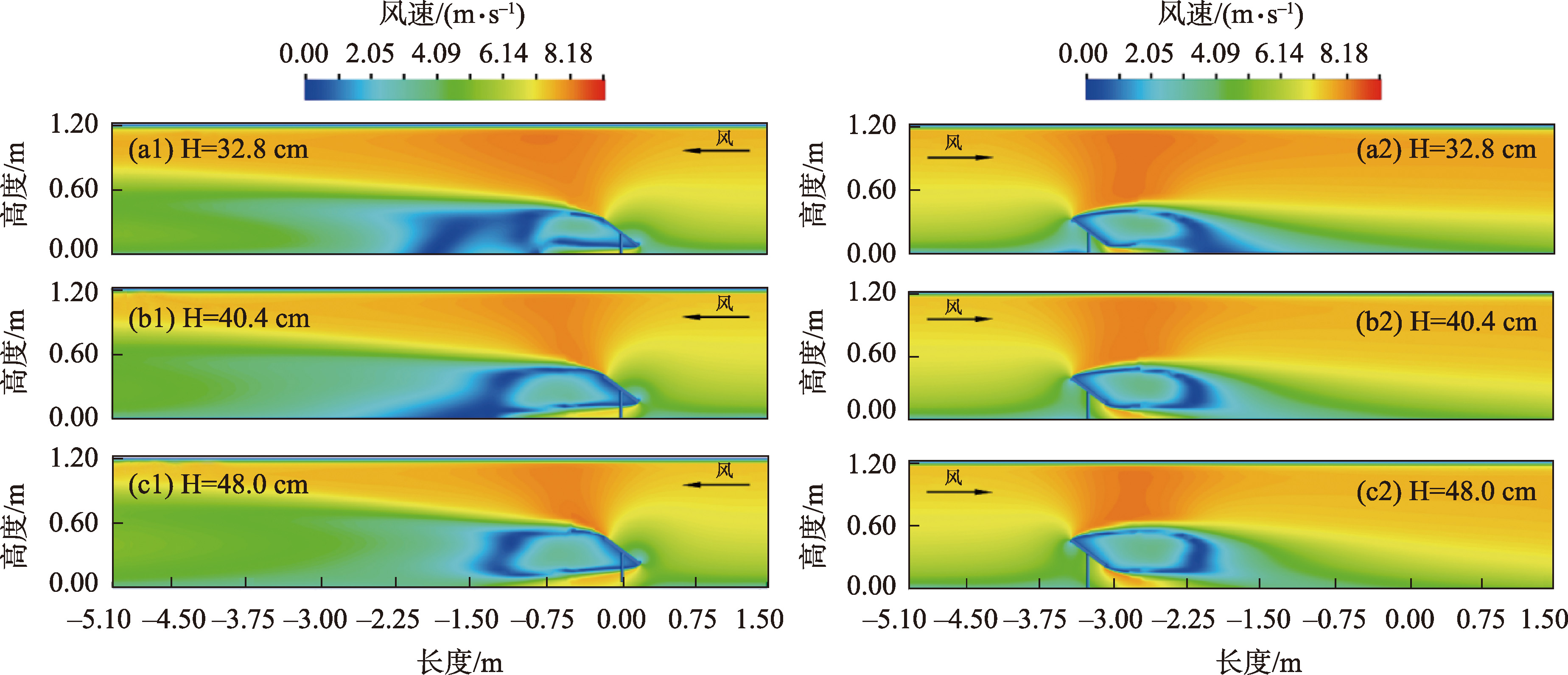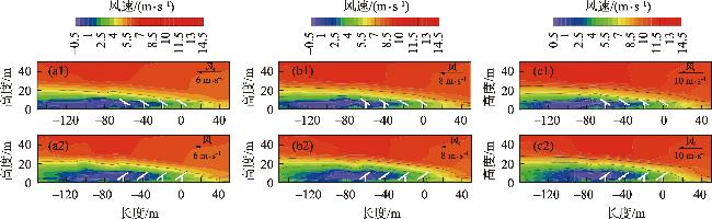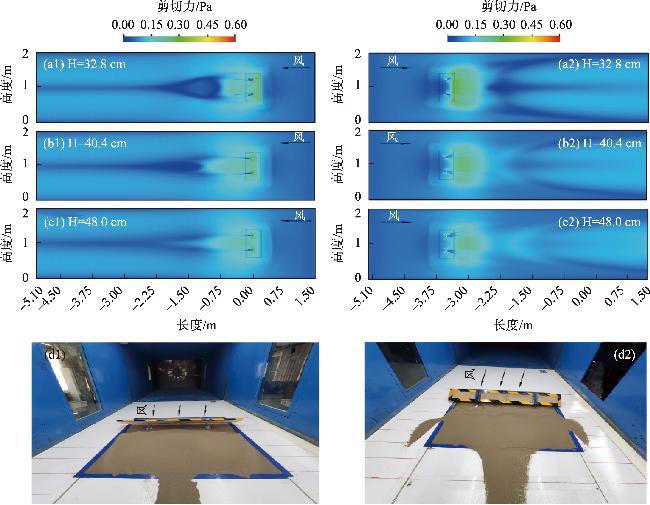 风沙活动引起地表侵蚀或堆积,影响光伏电站的安全运行。为阐明沙漠光伏电站地表风蚀的发生机制,通过风洞实验与数值模拟,分析了不同风速条件下(6 m∙s-1,8 m∙s-1,10 m∙s-1),光伏板在正、反风向下的风速流场特征及蚀积变化规律。结果表明:(1)光伏板改变了近地表风速和流场,形成了板前气流抬升区、板下气流加速区、板后涡流减速区及板尾气流恢复区;板下近地表风速显著增加,易掏蚀,而板后风速降低,易堆积。(2)反风向时,光伏板板下“狭管效应”导致气流加剧,风蚀明显大于正风向气流,而板后堆积与背风侧的涡流减速有关。(3)光伏电站边缘光伏阵列板下风蚀最为严重,而电站内部光伏阵列则风蚀较轻;随着光伏组件高度增加,板下风蚀有所减轻。研究结果可为沙漠光伏电站沙害防治和高效生产提供科学依据。