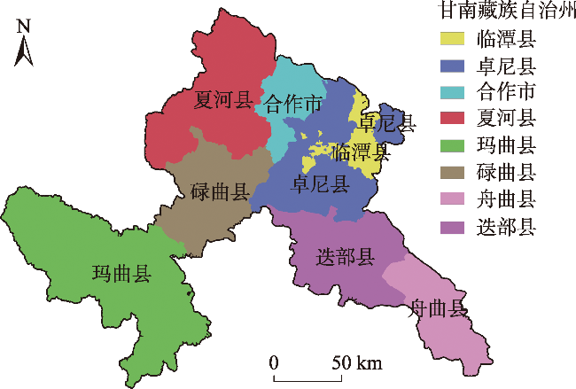 表1 甘南藏族自治州土地利用类型面积及占比Tab. 1 Area and proportion of land use types in Gannan Tibetan Autonomous Prefecture |