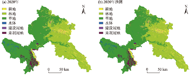 图6 甘南藏族自治州2020年土地利用现状和预测Fig. 6 Current situation and prediction of land use in 2020 in Gannan Tibetan Autonomous Prefecture |